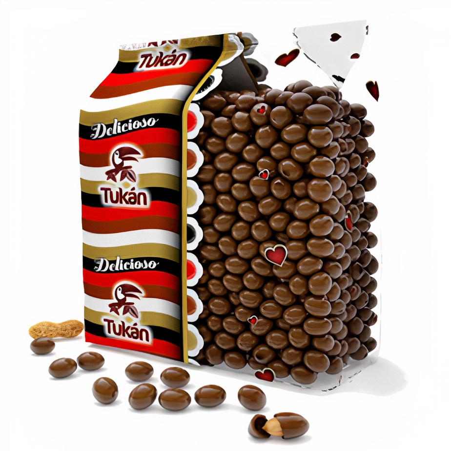 Ingredienti: Cioccolato al latte 48% (zucchero, burro di cacao, latte scremato in polvere, pasta di cacao, grasso di latte anidro, emulsionante: lecitina di soia (E-322), emulsionante: poliricinoleato di poliglicerolo (PGPR) (E-476), aroma naturale di vaniglia. Arachidi 34%, saccarosio, agente di rivestimento: gomma arabica E414, maltitolo, amido e gommalacca E904.
