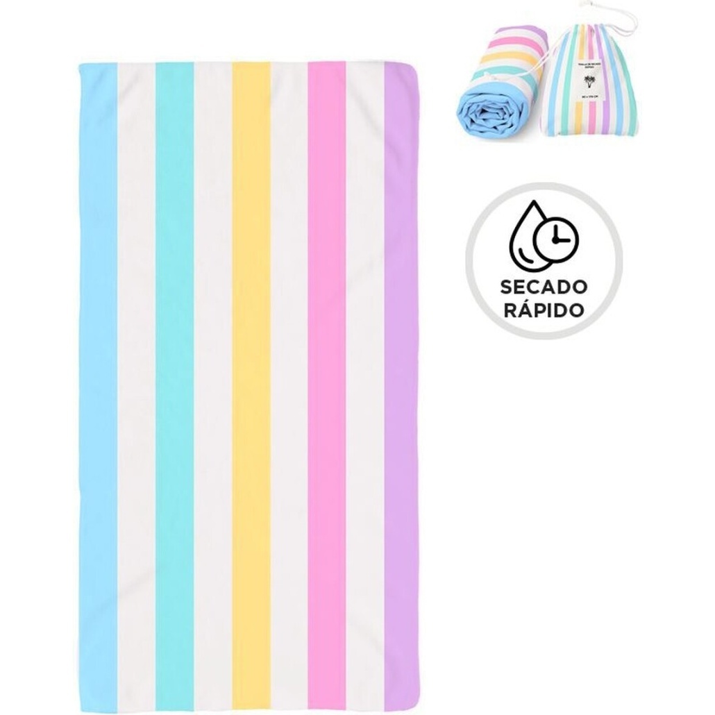 Asciugamano ad asciugatura rapida con un design a righe in colori pastello che dona un tocco allegro e moderno.