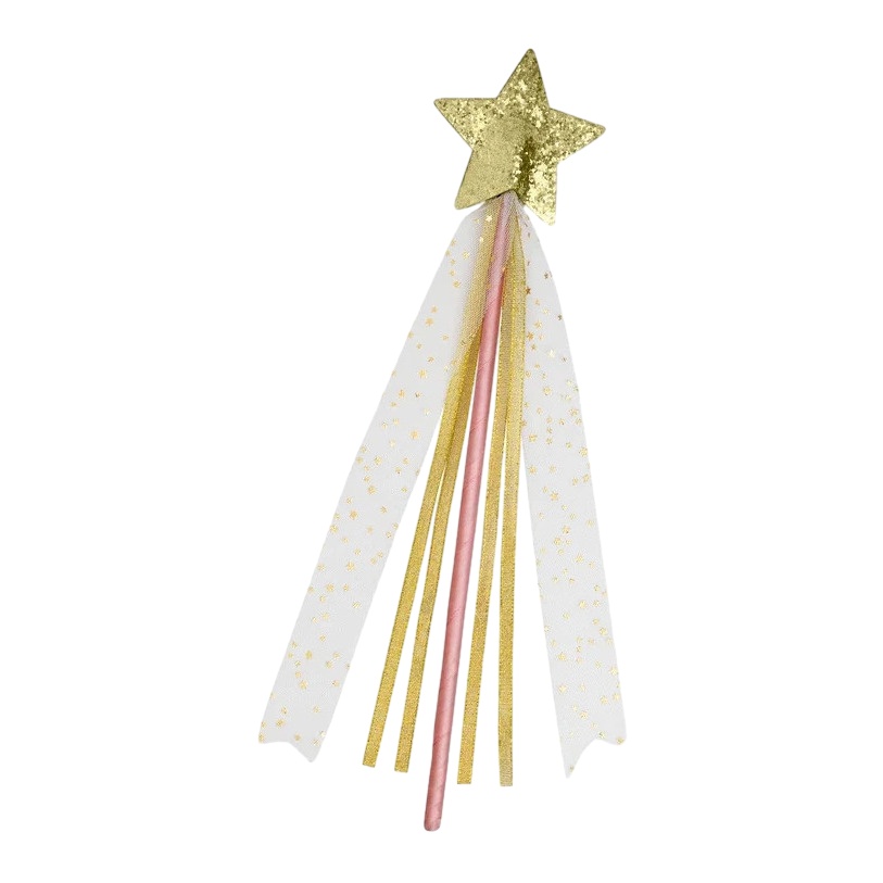 Bacchetta dorata a forma di stella con luccichio di fata