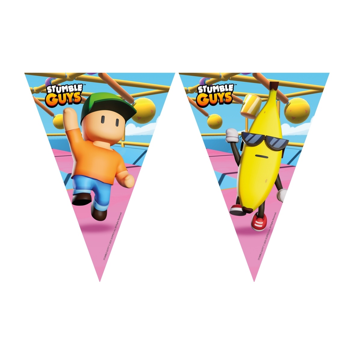 Decora le tue celebrazioni con la simpatica estetica di Stumble Guys. Bandierina triangolare con personaggi colorati e design accattivante che dona energia e un tocco videoludico alle feste dei più piccoli. Stampata su carta con finiture lucide per mantenere i colori vivi. Confezione: 1 pezzo.