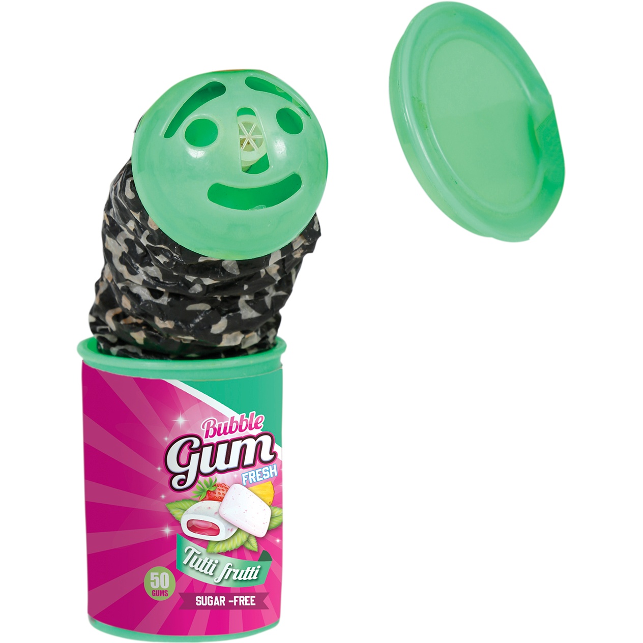 Divertiti e sorprendi con il classico barattolino di chewing gum che nasconde uno scherzo. Aprendo il coperchio compare un pupazzetto in lattice che salta, provocando reazioni inaspettate e risate immediate.