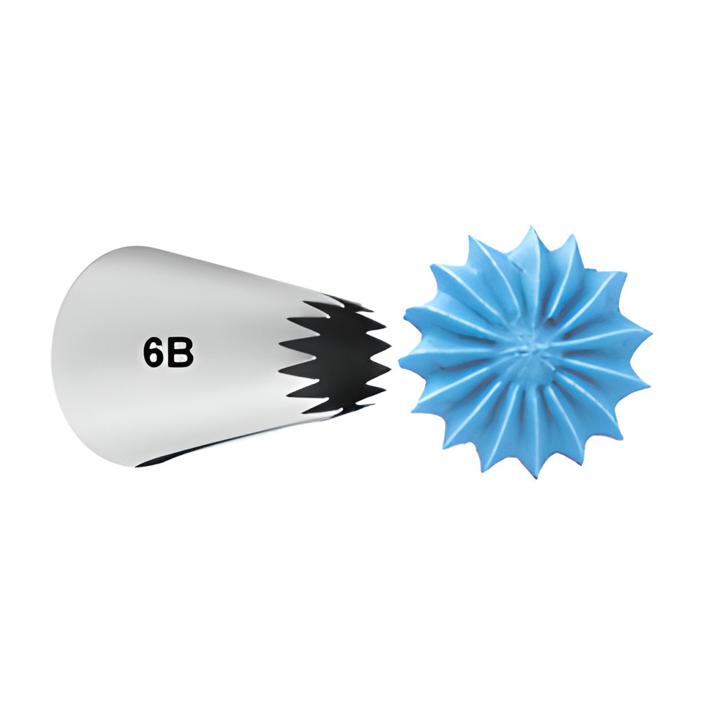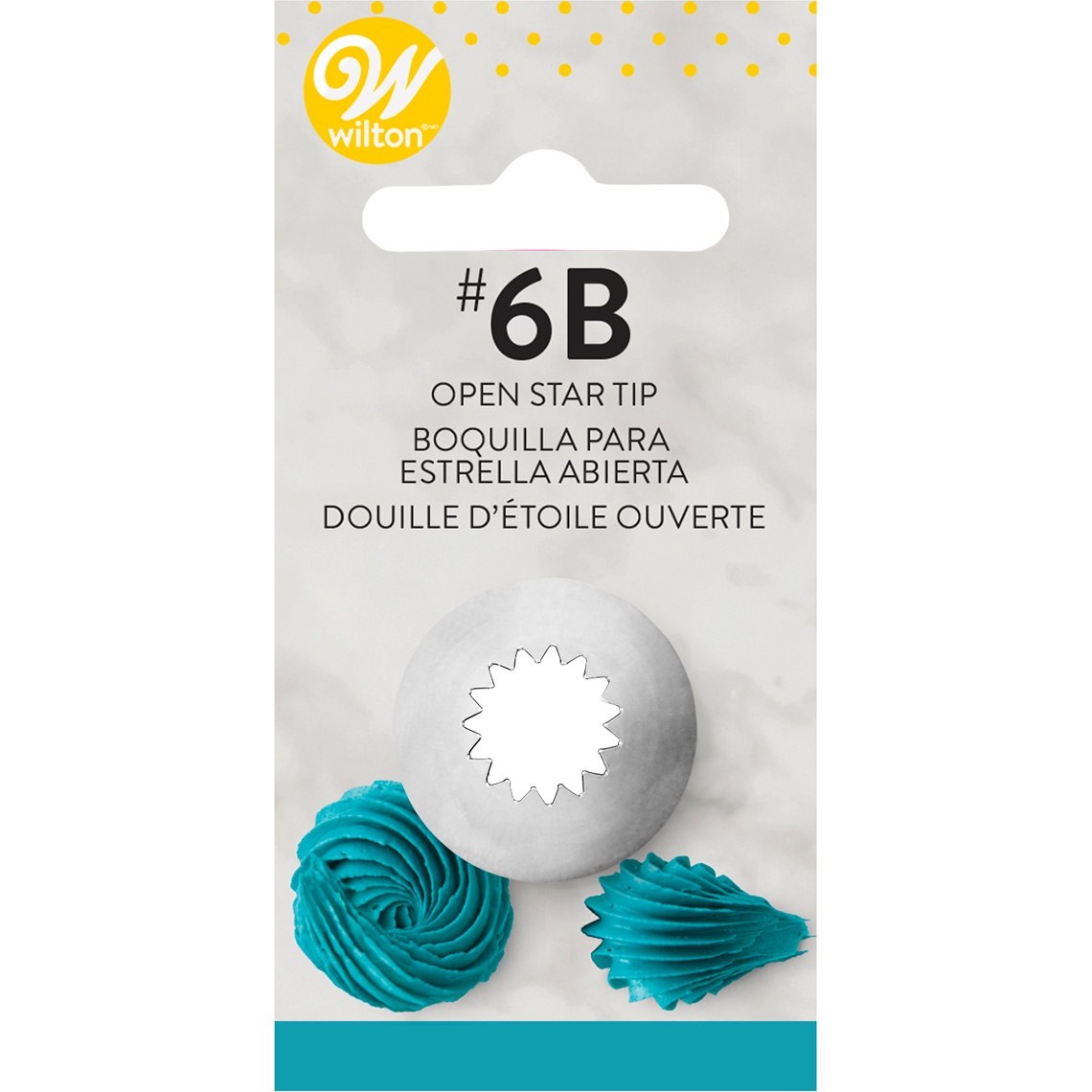 Il beccuccio Wilton Open Star n. 6B permette di creare decorazioni a forma di stella, fiori e rosette con grande definizione e finitura professionale. La sua apertura dentellata dona texture dettagliate e rilievi uniformi, ideali per aggiungere un tocco raffinato a torte, cupcake e dolci. Compatibile con sac à poche e adattatori standard, offre controllo e precisione nei lavori delicati con crema al burro o glassa reale. Strumento indispensabile per pasticceri professionisti e appassionati esigenti.