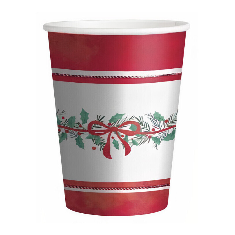 Bicchieri da 270 ml con vischio e fiocco rosso - 6 pezzi