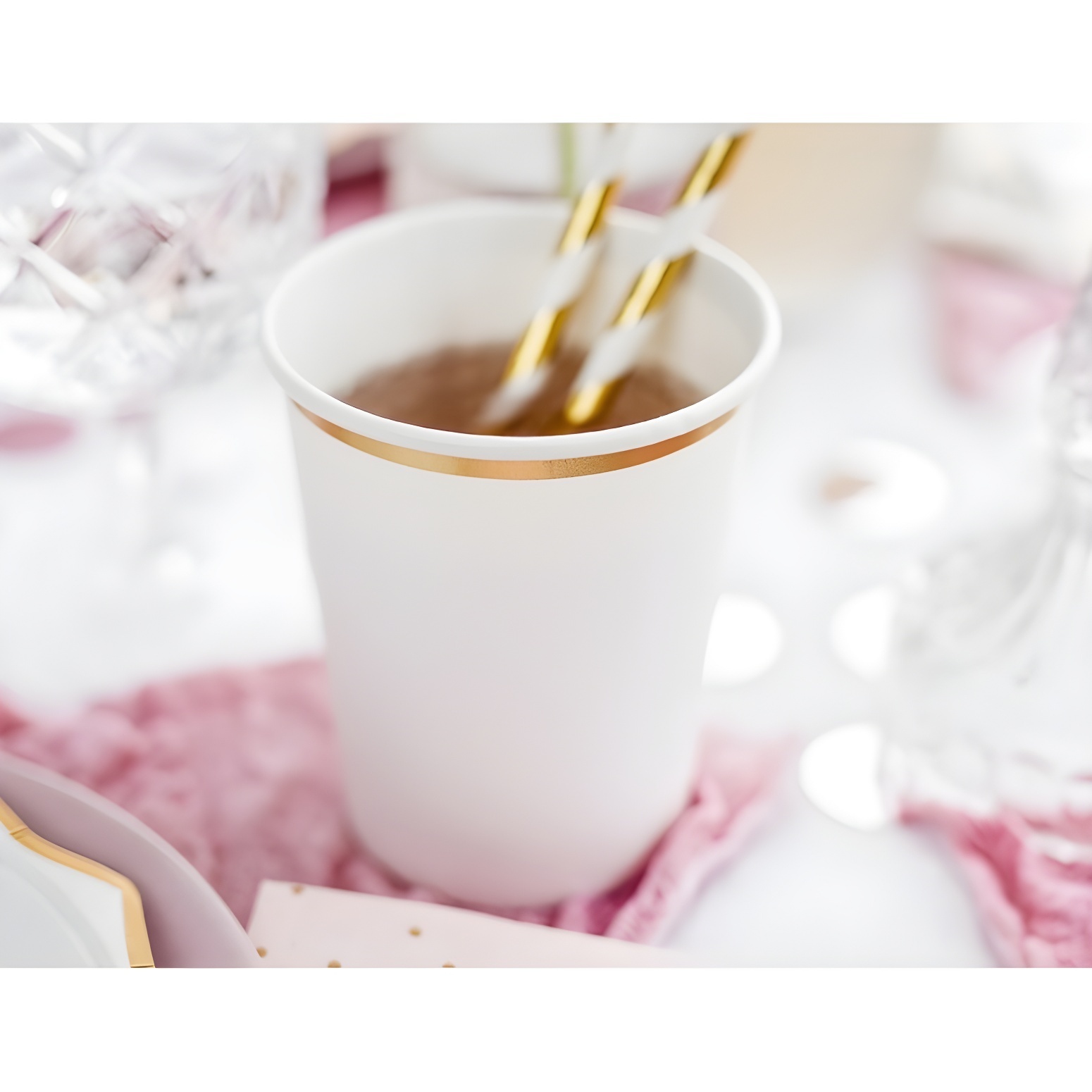 Bicchieri di carta bianchi con bordo dorato da 260 ml - 6 pezzi