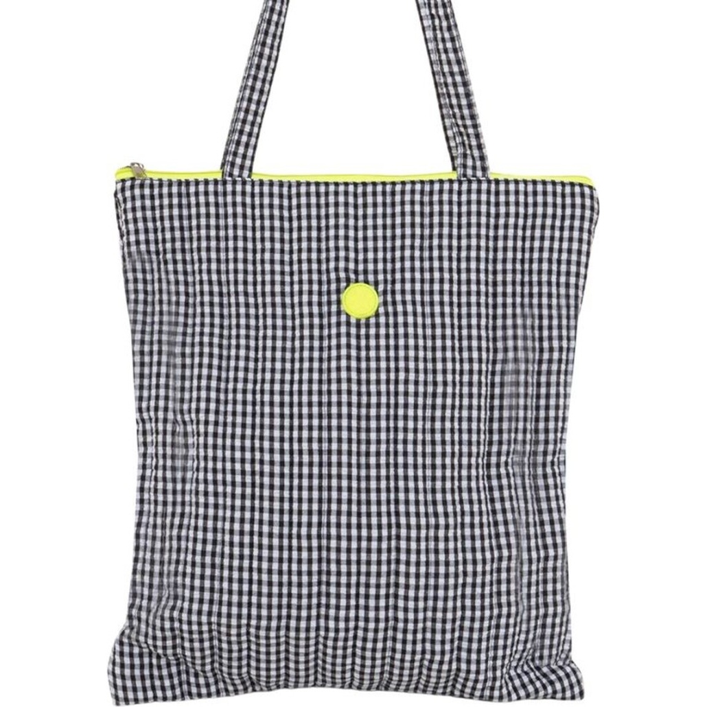 Tote bag con motivo Vichy classico e chiusura con cerniera fluo che regala un tocco moderno e vivace.