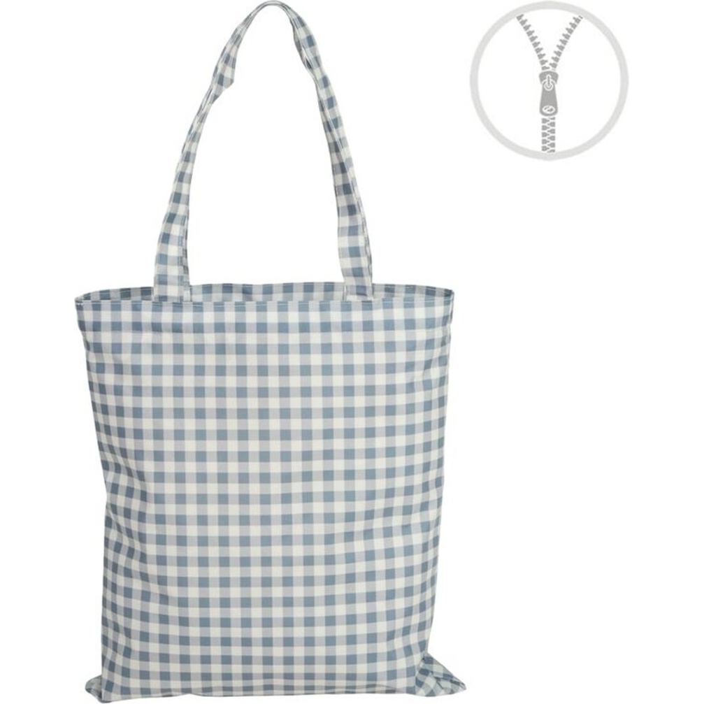 Borsa in tessuto Vichy blu impermeabile con cerniera