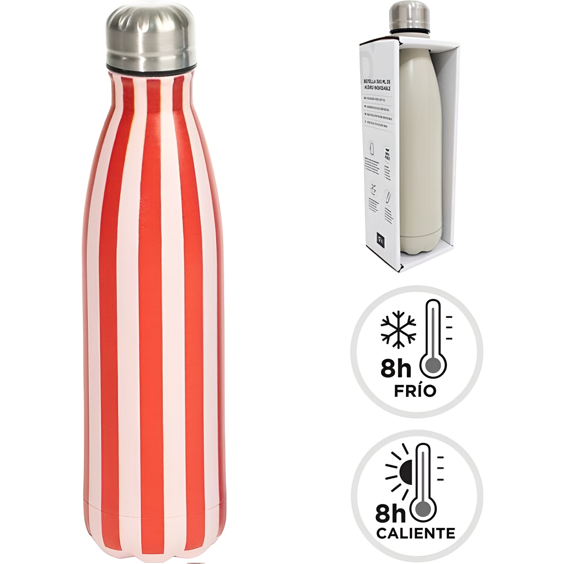 Bottiglia termica da 0,5 L a righe rosse e bianche
