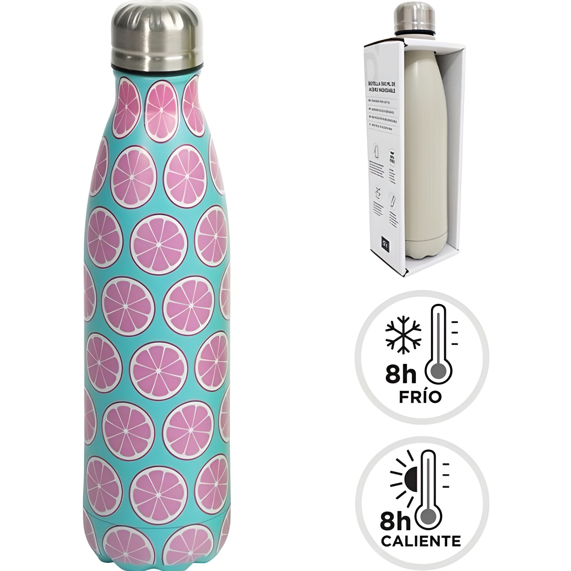 Bottiglia termica con una vivace stampa di frutta, perfetta per portare le tue bevande preferite con stile. Design moderno e colorato che aggiunge un tocco divertente alla giornata. Leggera e comoda da trasportare, ideale per l'ufficio, la palestra o le uscite all'aria aperta.