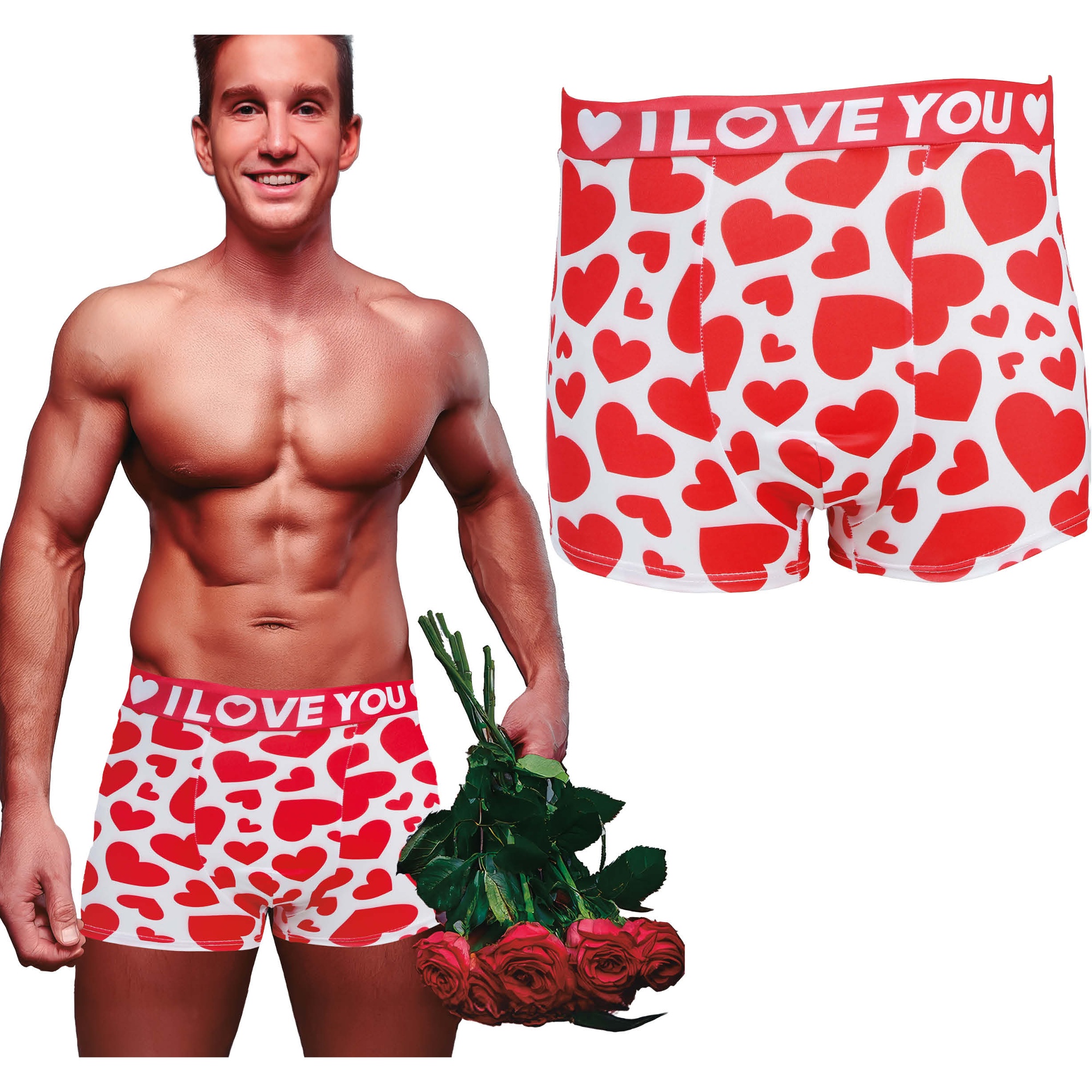 Boxer "I LOVE YOU" con stampa di cuori rossi e bianchi, pensati per sorprendere a San Valentino e nelle occasioni romantiche. Il design con vita ben definita e la scritta "I LOVE YOU" aggiunge un tocco divertente e sentimentale.