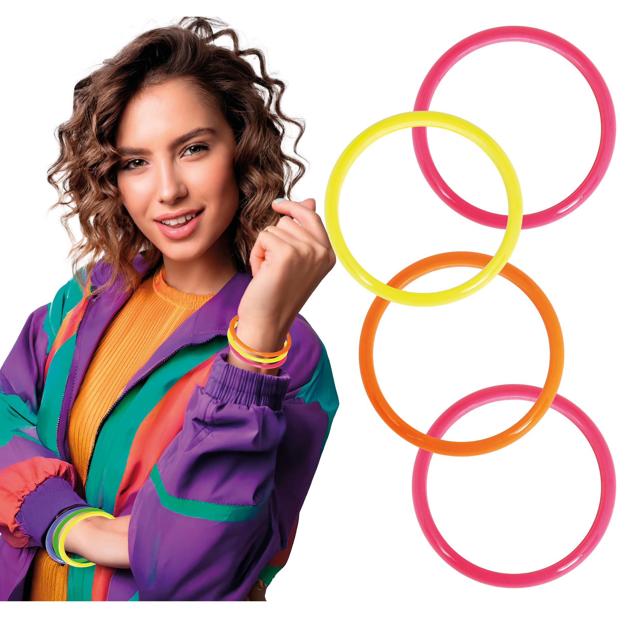 - Confezione da 4 braccialetti neon in colori assortiti per un look rétro immediato.