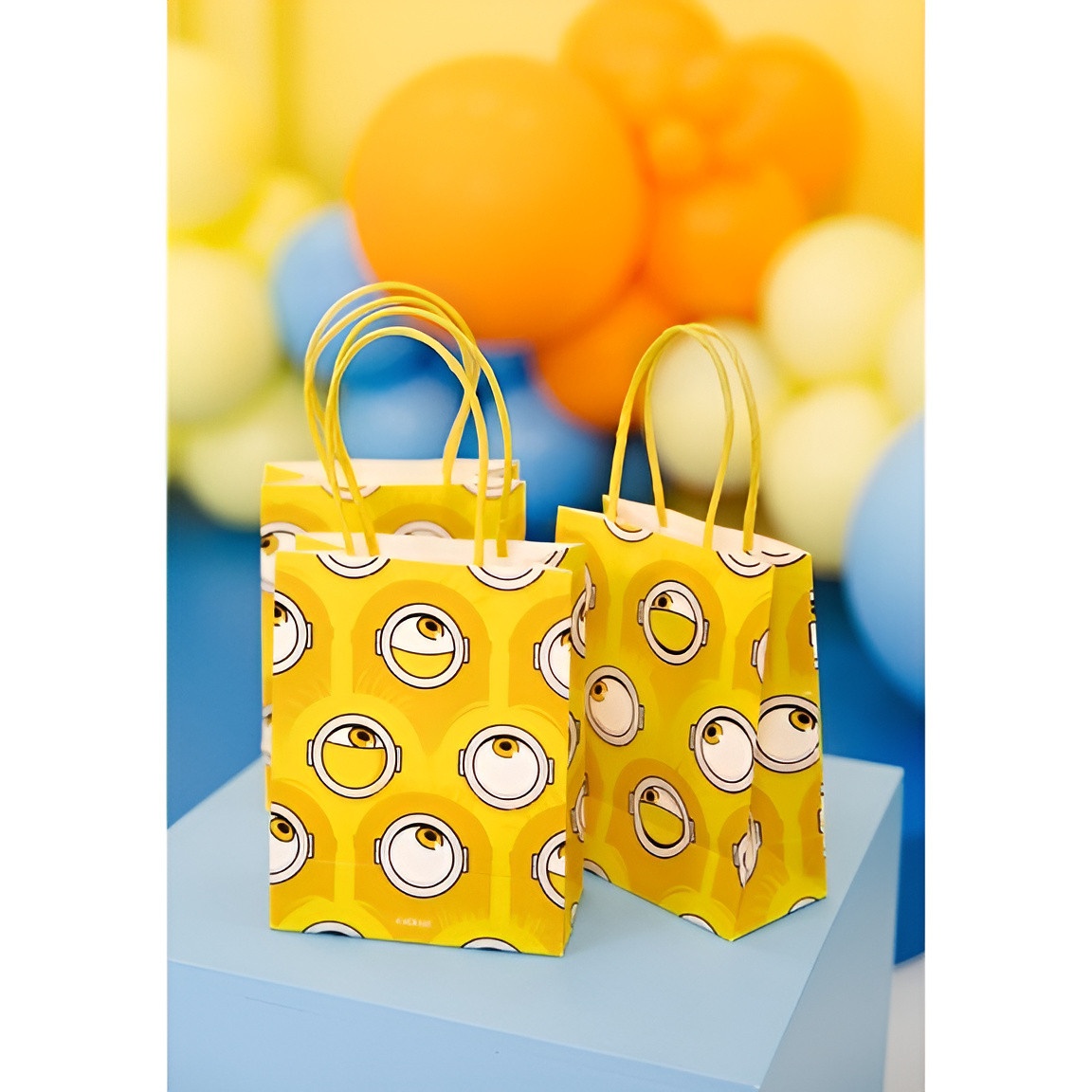 Buste regalo con stampa dei Minions in un vibrante giallo, pensate per dare allegria alle feste dei più piccoli.