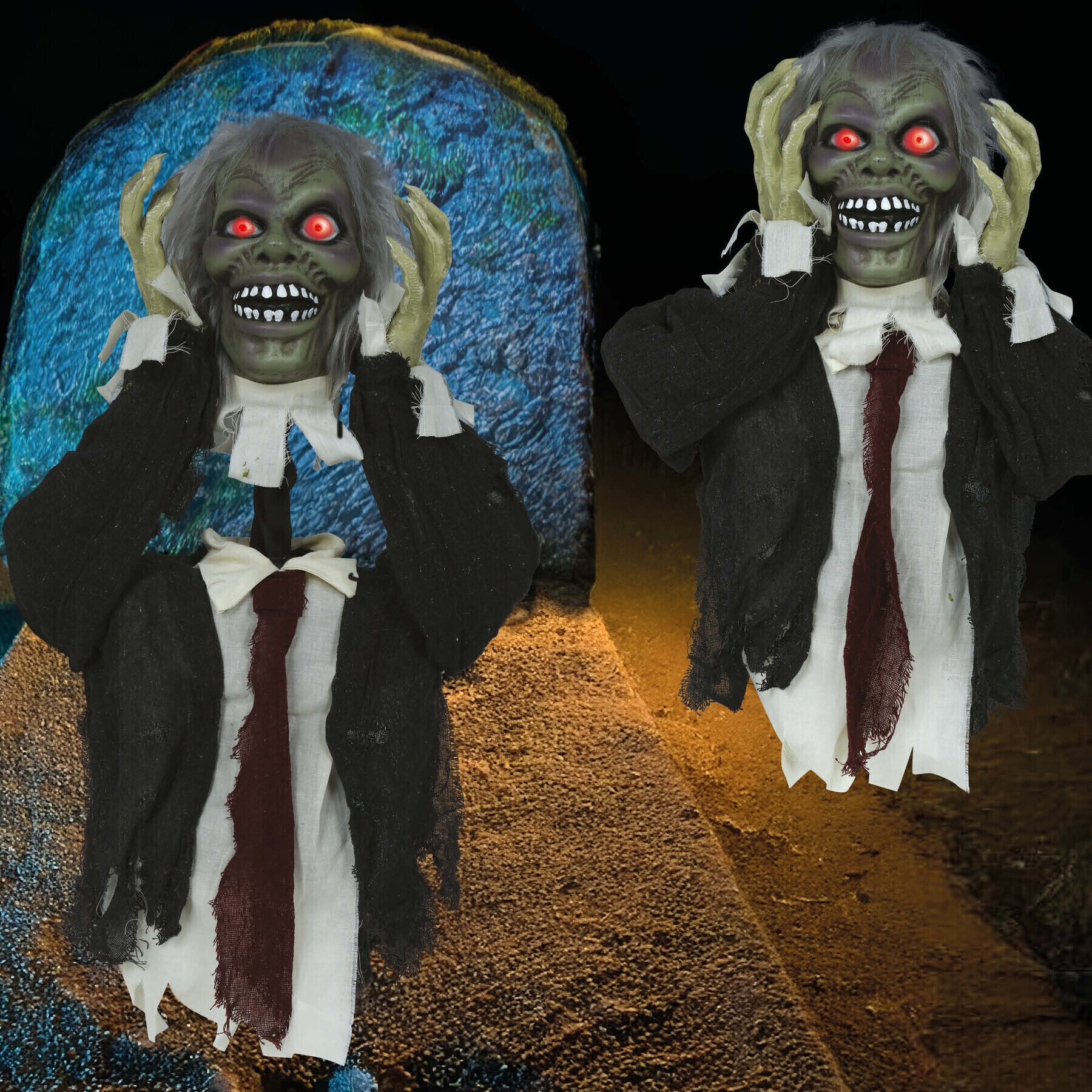 Busto di zombie con luce, suono e movimento di 55 cm