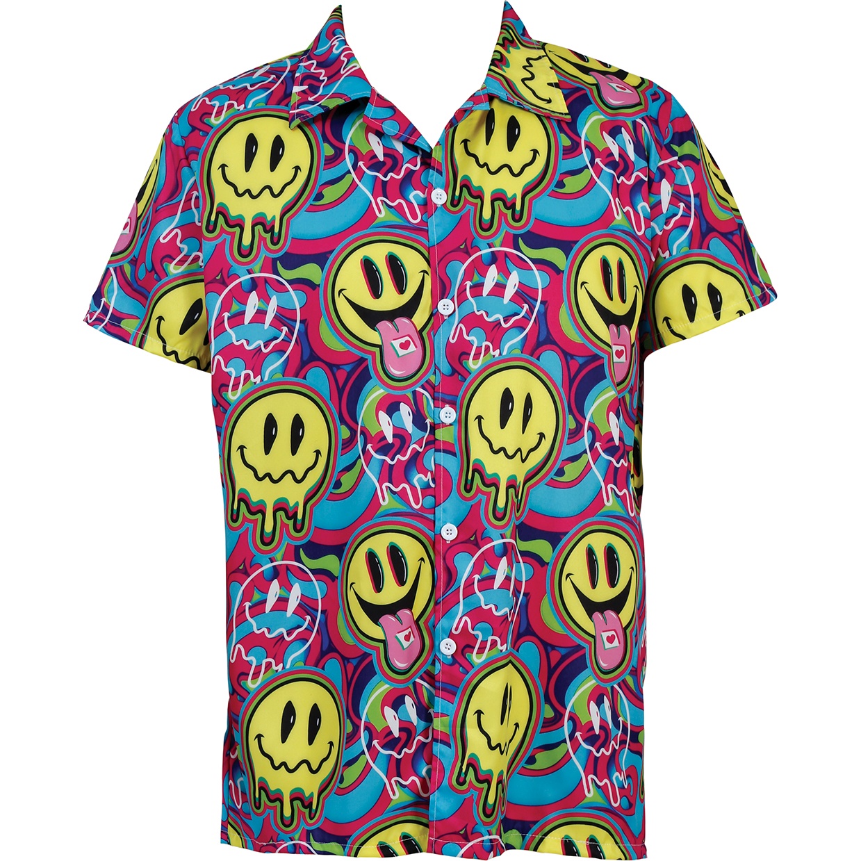 Camicia costume psichedelica con faccine sorridenti da uomo