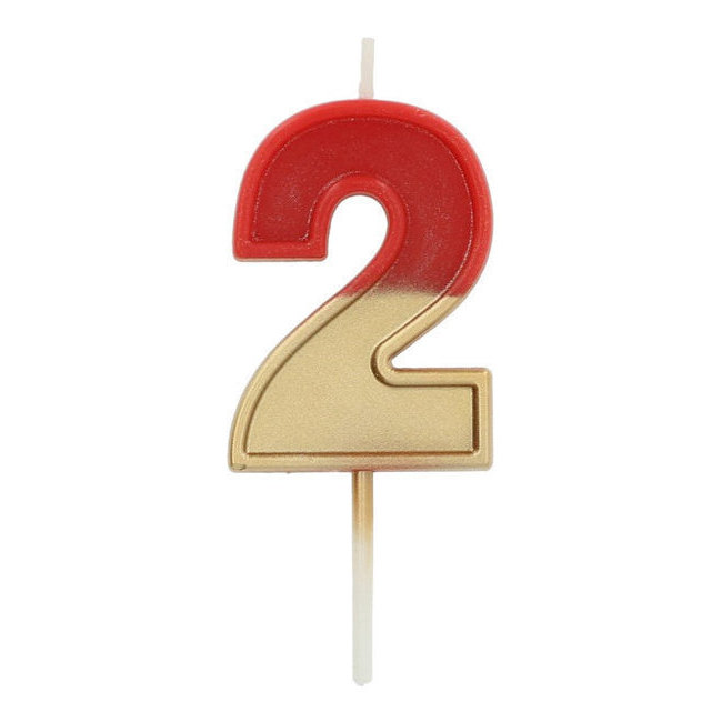 Candela a numero bicolore tonalità rosso-rosa e oro di 5 cm
