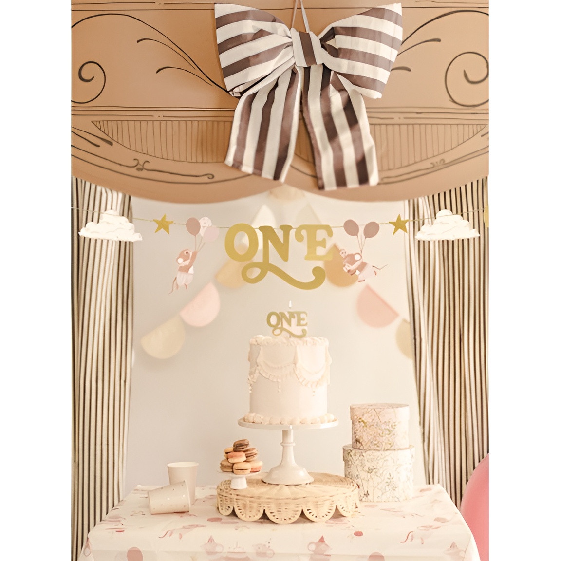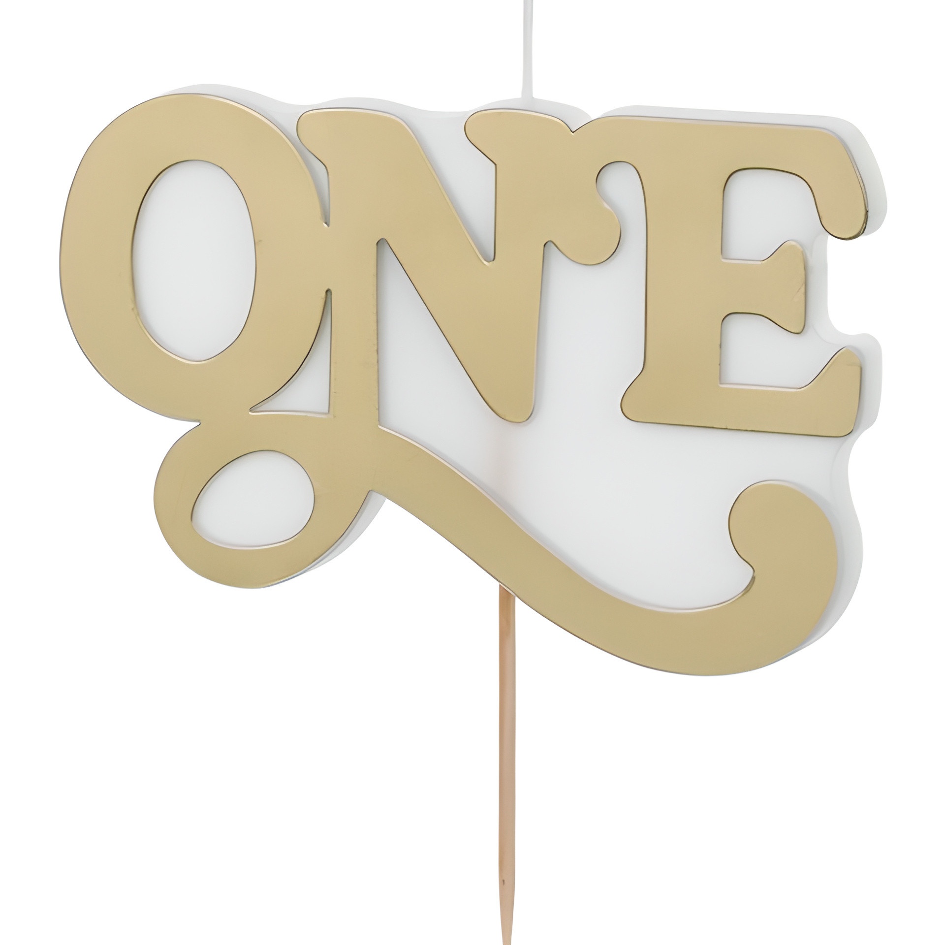 ONE con finitura in oro freddo per un tocco elegante sulla torta del primo compleanno. Lettere d'impatto e perfettamente leggibili che risaltano nelle foto e nelle celebrazioni. Posizionamento semplice grazie allo stecchino integrato, che assicura una presa stabile. Dona un tocco festoso e sofisticato a qualsiasi allestimento di compleanno.