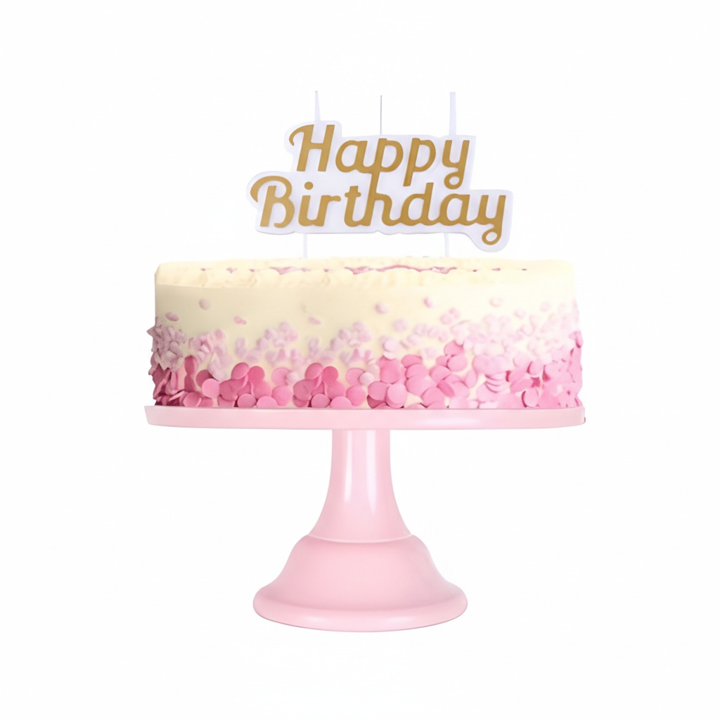 Magnifica candela con messaggio di compleanno su sfondo bianco e lettere, disponibile in varie tonalità ideali per le tue celebrazioni.