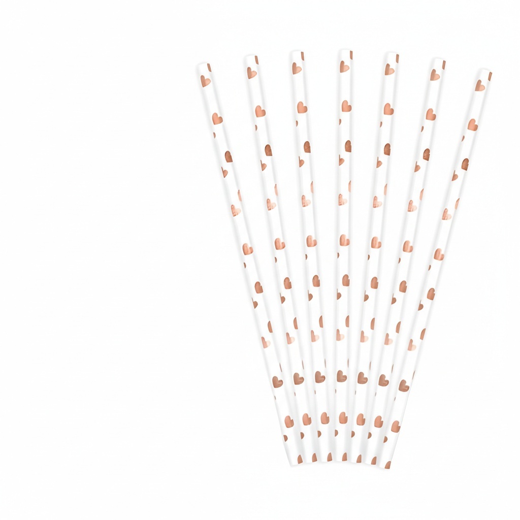 Il pacchetto contiene 10 unità di cannucce di colore bianco con cuori di colore rosa.