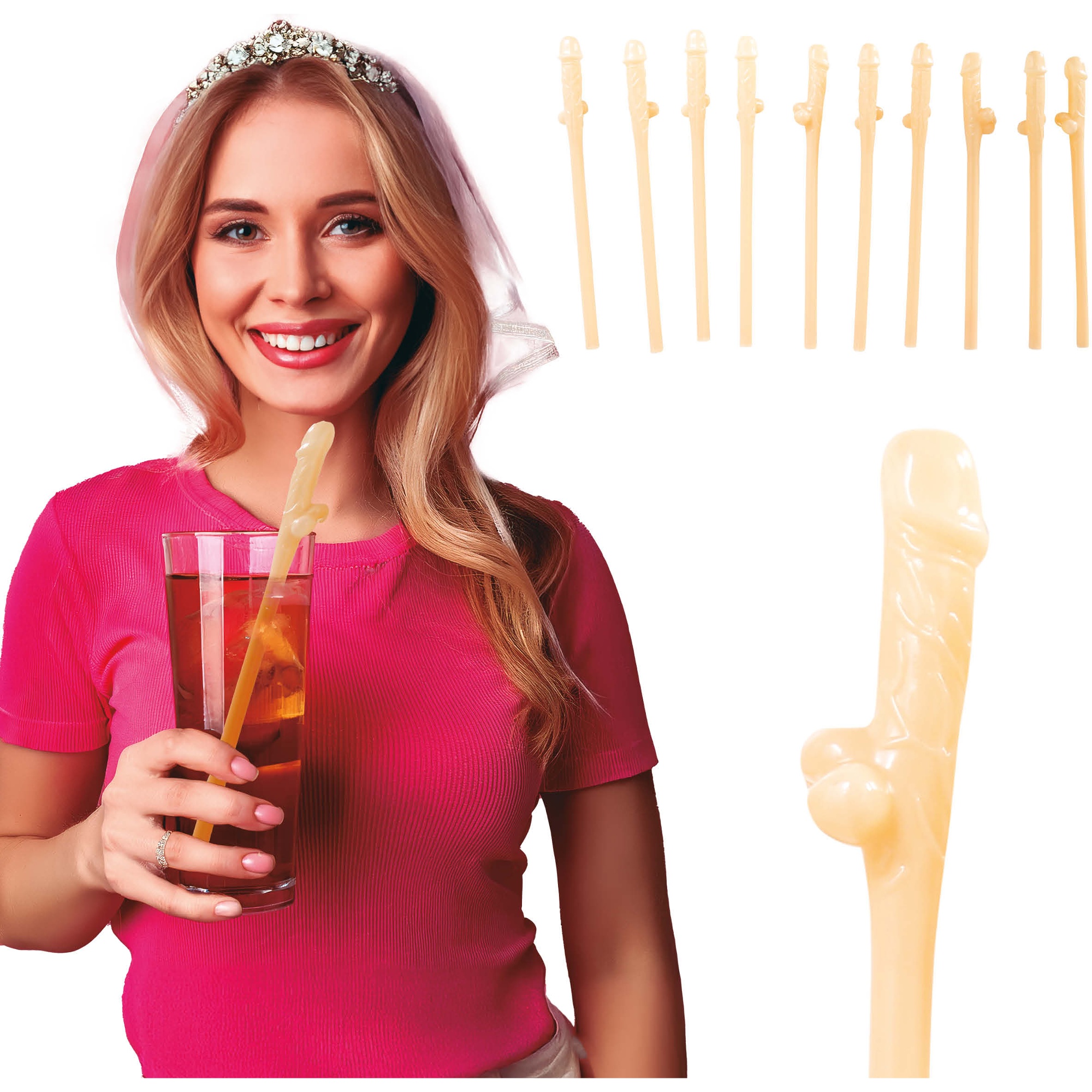 Confezione da 10 cannucce dal design divertente a forma di pene, pensate per rendere più festoso l'addio al nubilato.