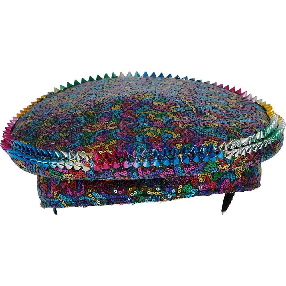 El producto contiene pedrería y tachuelas que pueden desprenderse y representar un riesgo de asfixia para niños pequeños.