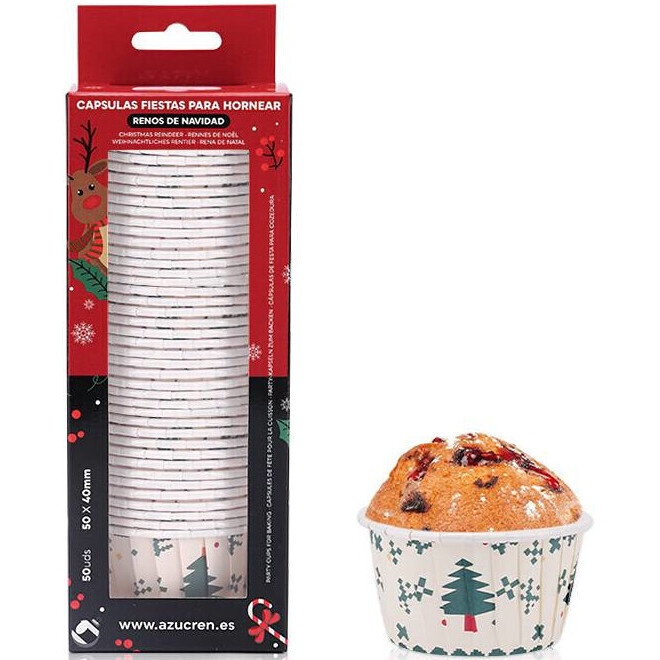 Capsule per cupcake di 5 cm con abeti di Natale - 50 pezzi