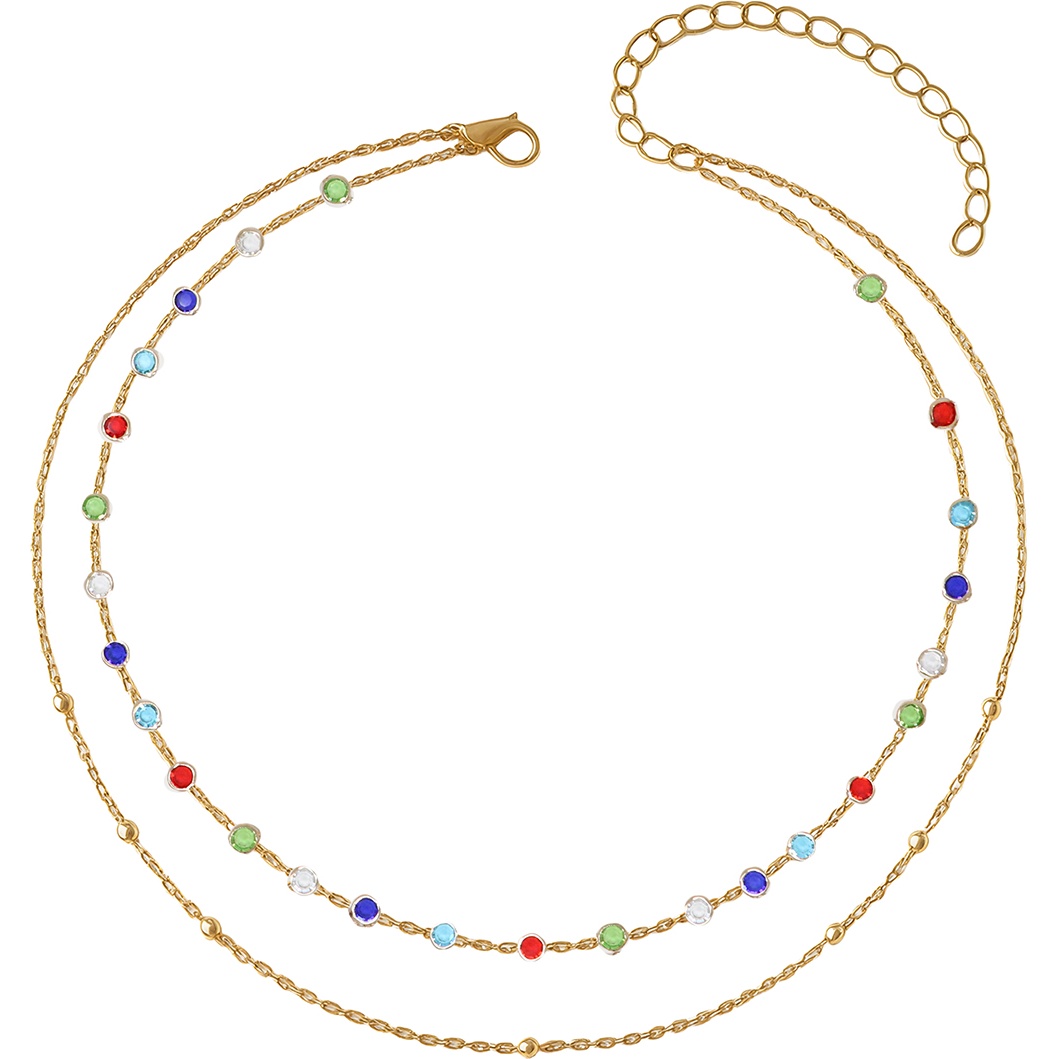 - Stile bohemien a doppia catena con pietre colorate che donano un effetto femminile e d'impatto.