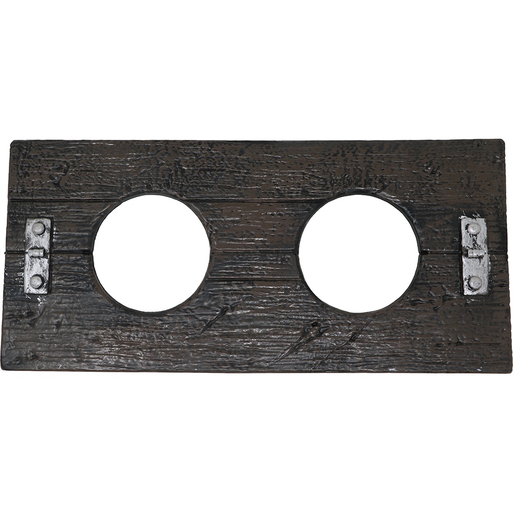 - Design con aperture per le mani che riproduce l'aspetto classico dei ceppi medievali.