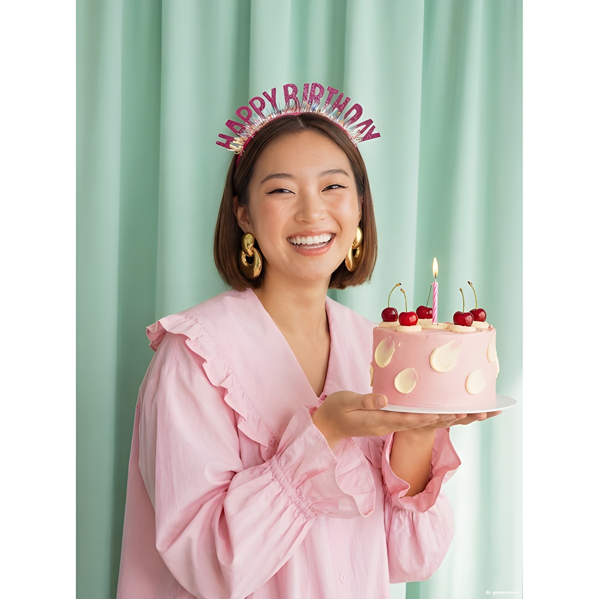 Cerchietto festivo "Happy Birthday" fucsia con lettere ricoperte di glitter per una brillantezza extra nelle feste dei più piccoli. Le nappine olografiche aggiungono colore e movimento. Dimensioni compatte di 18 x 18 cm, ideale per bambine nei giorni di compleanno. Leggero e comodo, valorizza le foto e anima ogni festa.