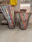Es justamente lo que estaba buscando Es una papelera de muy buena calidad, muy fuerte y queda muy bien en mi tienda con papeles de regalos