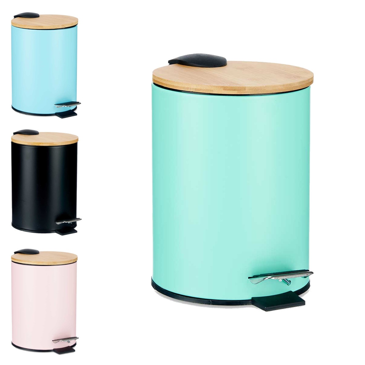 Cestino da bagno da 3 L in vari colori con coperchio in bambù