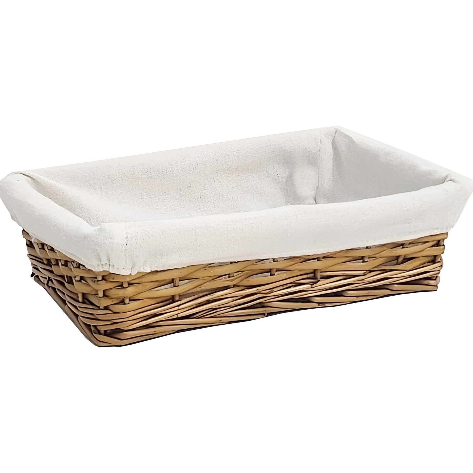 Elegante cesto-vassoio foderato, pensato per presentare pane e pasticceria con un aspetto curato e invitante.