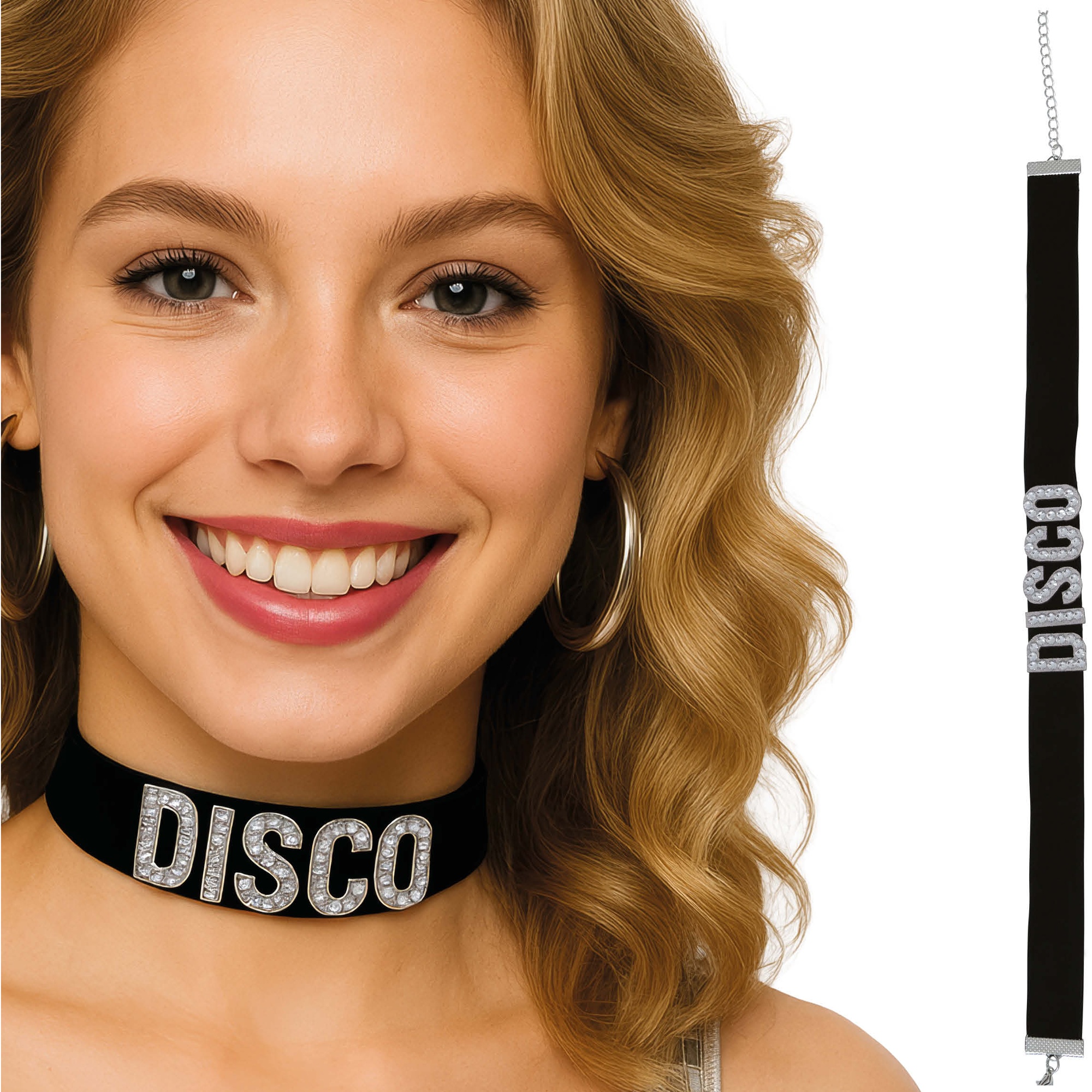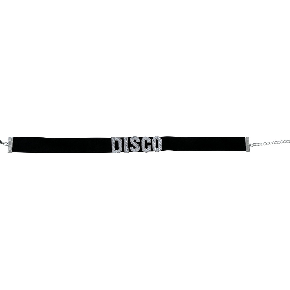 Choker in stile retrò con le lettere "DISCO" in strass che donano brillantezza e un'allure festosa.