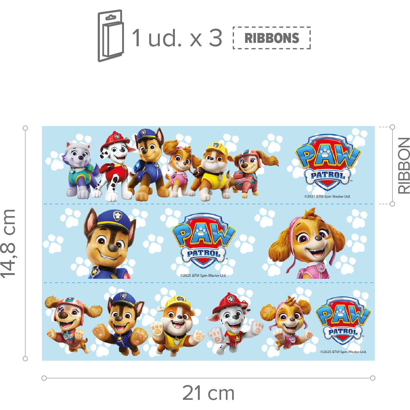 Cialda commestibile di Patrulla canina per bordo torta 21 x 4,95 cm - 3 pezzi