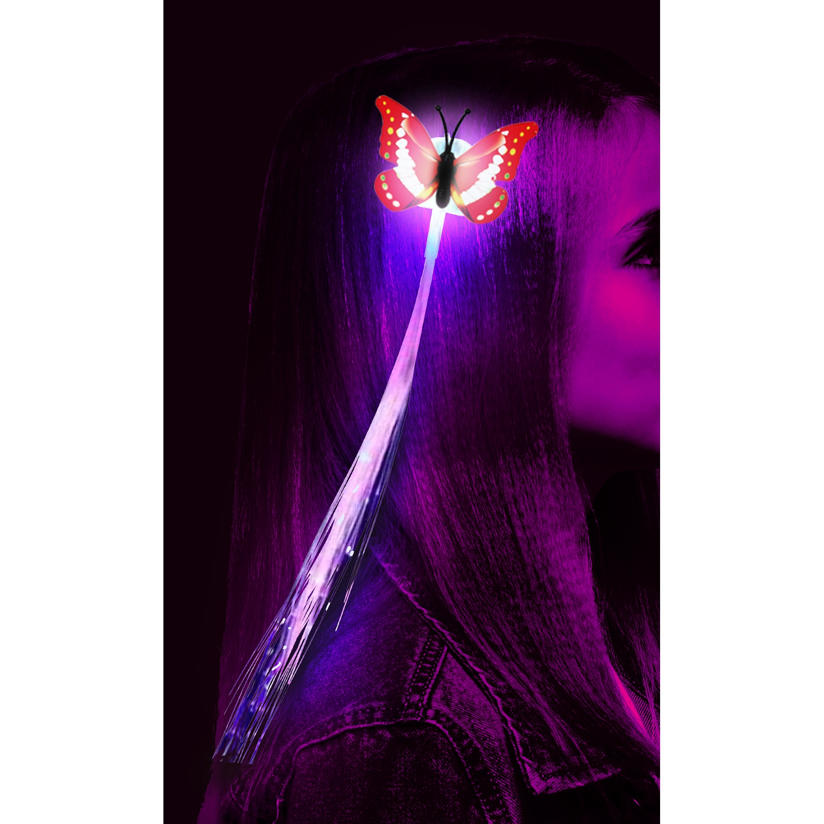 Ciocca luminosa perfetta per aggiungere un tocco di magia a feste e compleanni per bambini. I sottili filamenti luminosi creano un effetto incantato che valorizza acconciature e costumi. Si fissa con un pratico clip a forma di farfalla, comodo e leggero per i più piccoli. Ideale per photocall, animazioni e come sorpresa durante le celebrazioni.