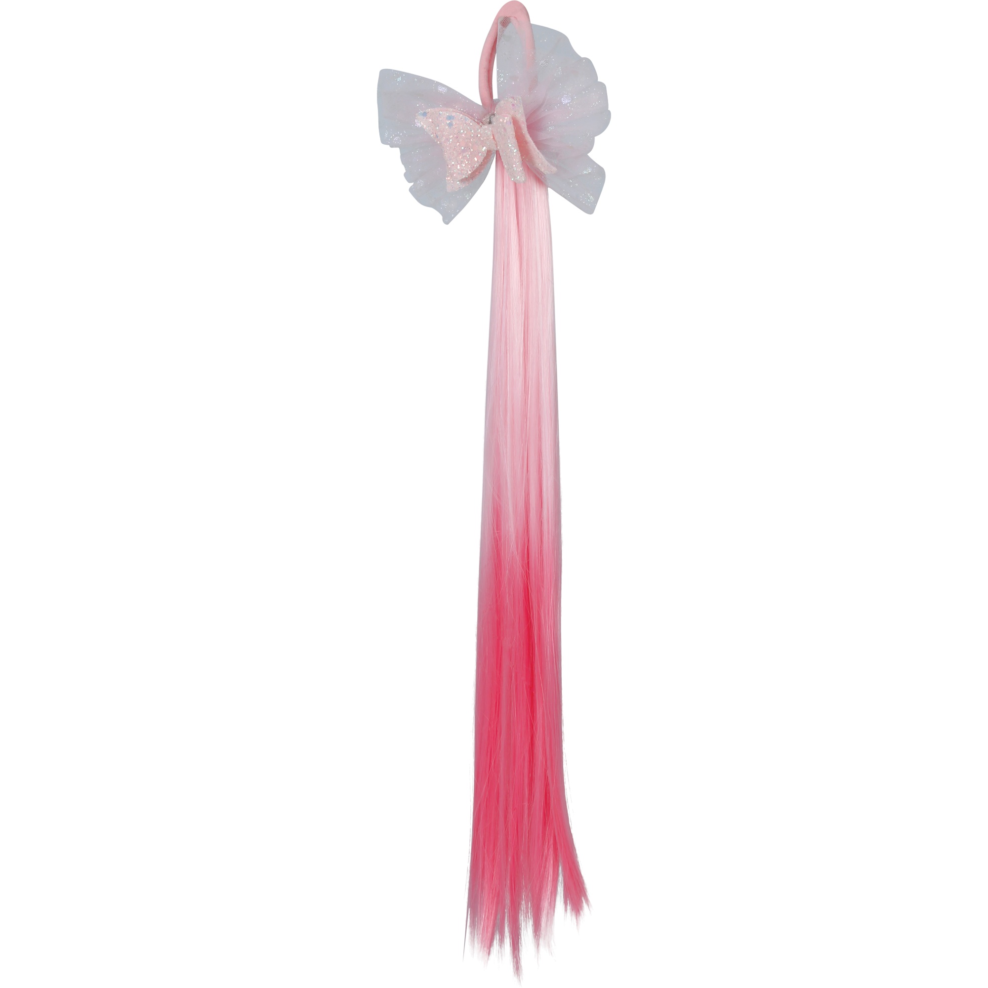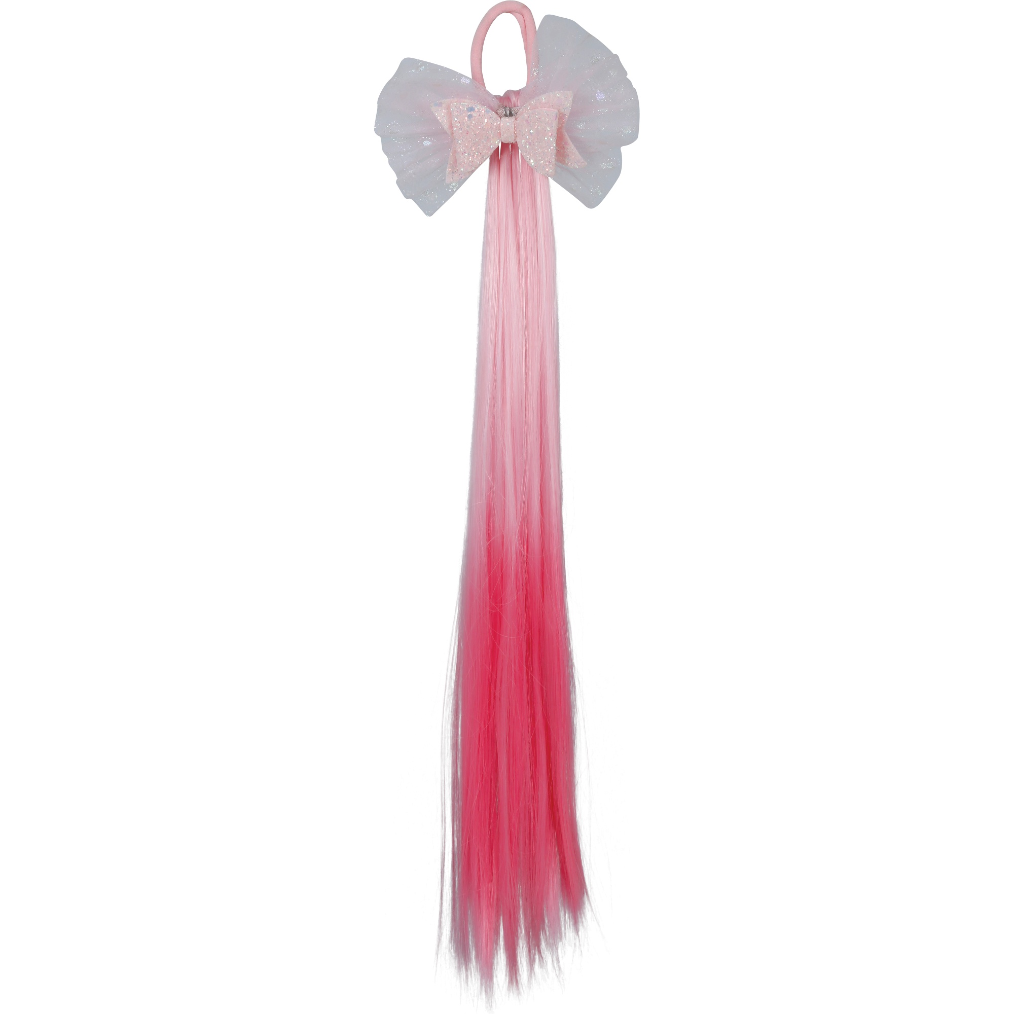 Ciocca sintetica sfumata rosa con fiocco decorativo per aggiungere un tocco divertente e femminile alla pettinatura.