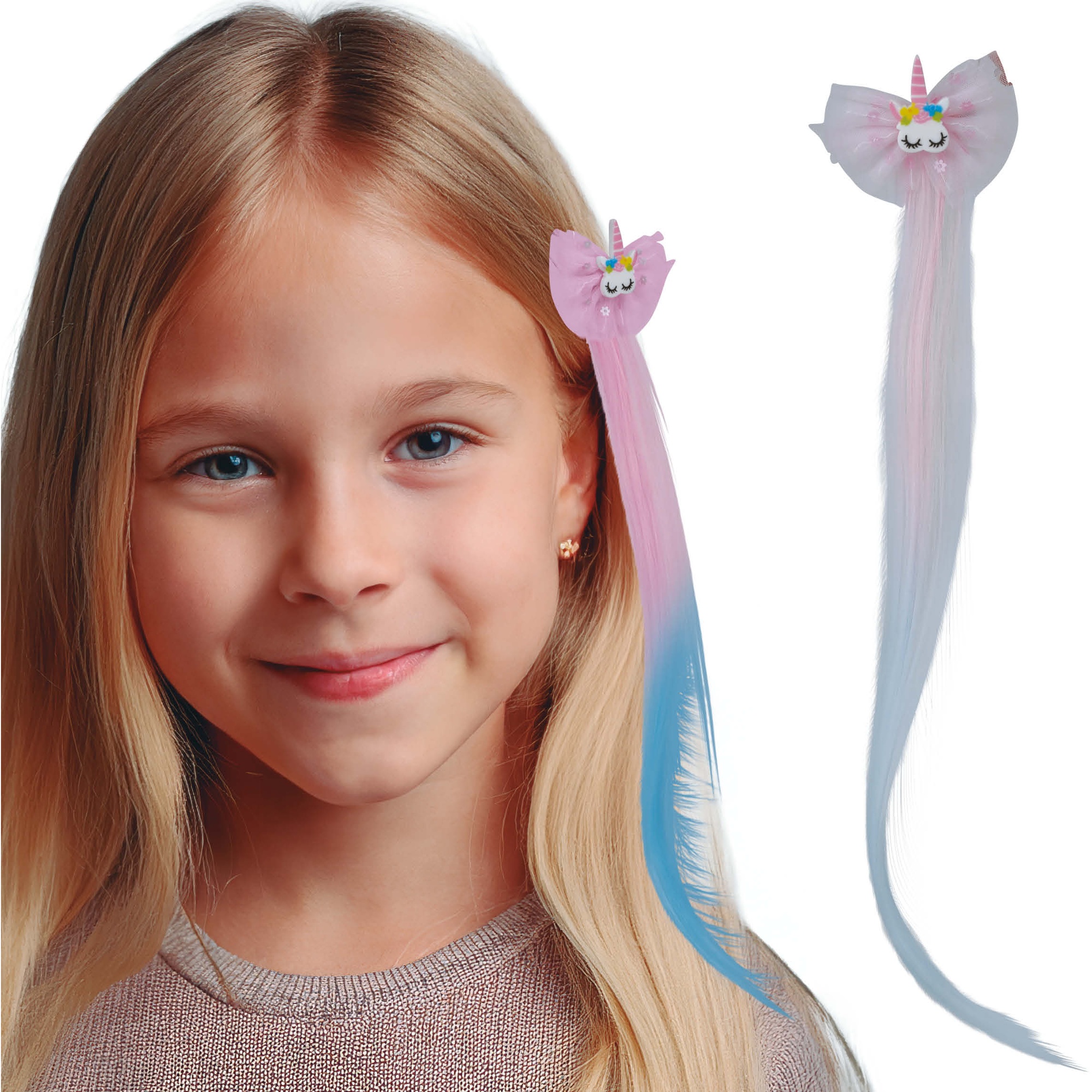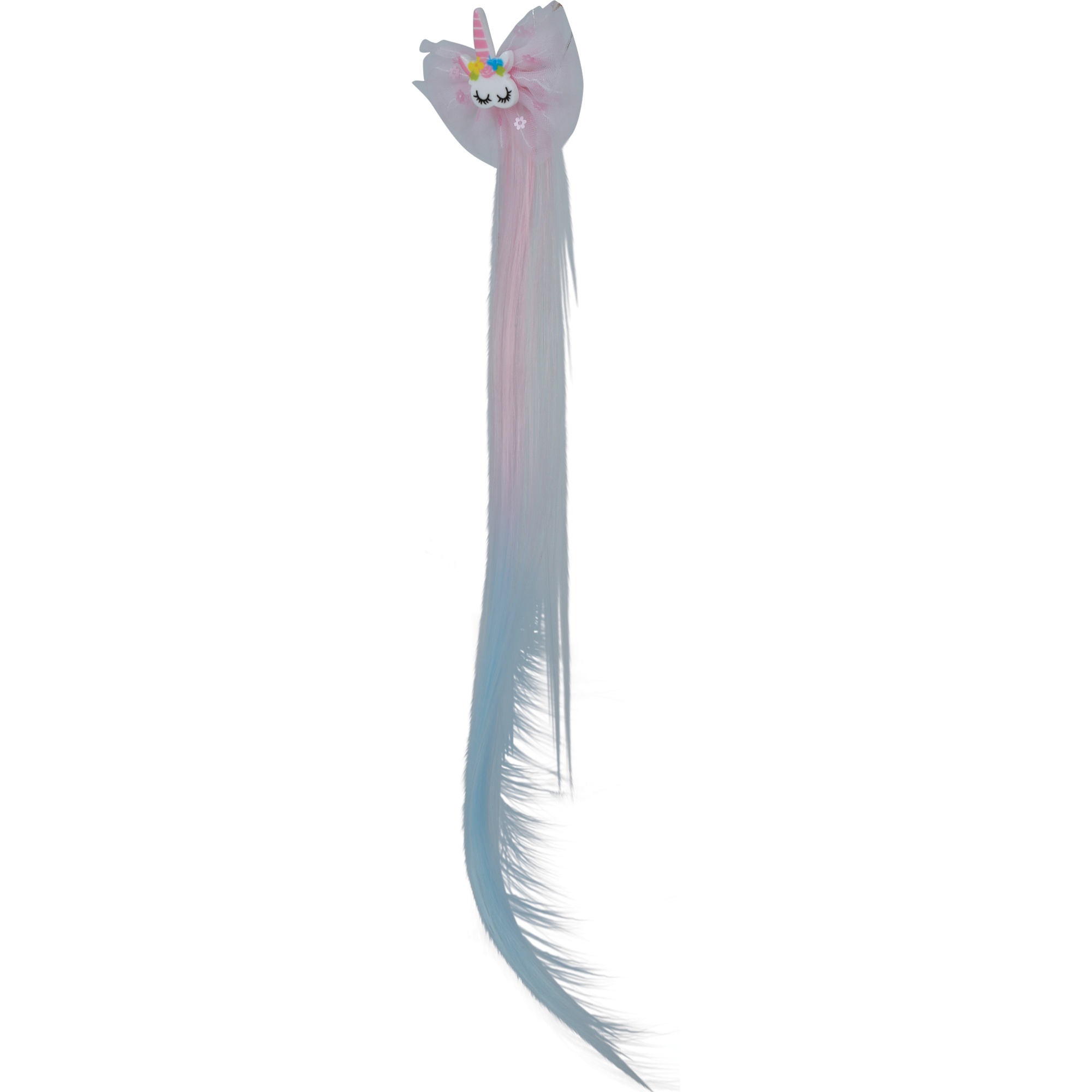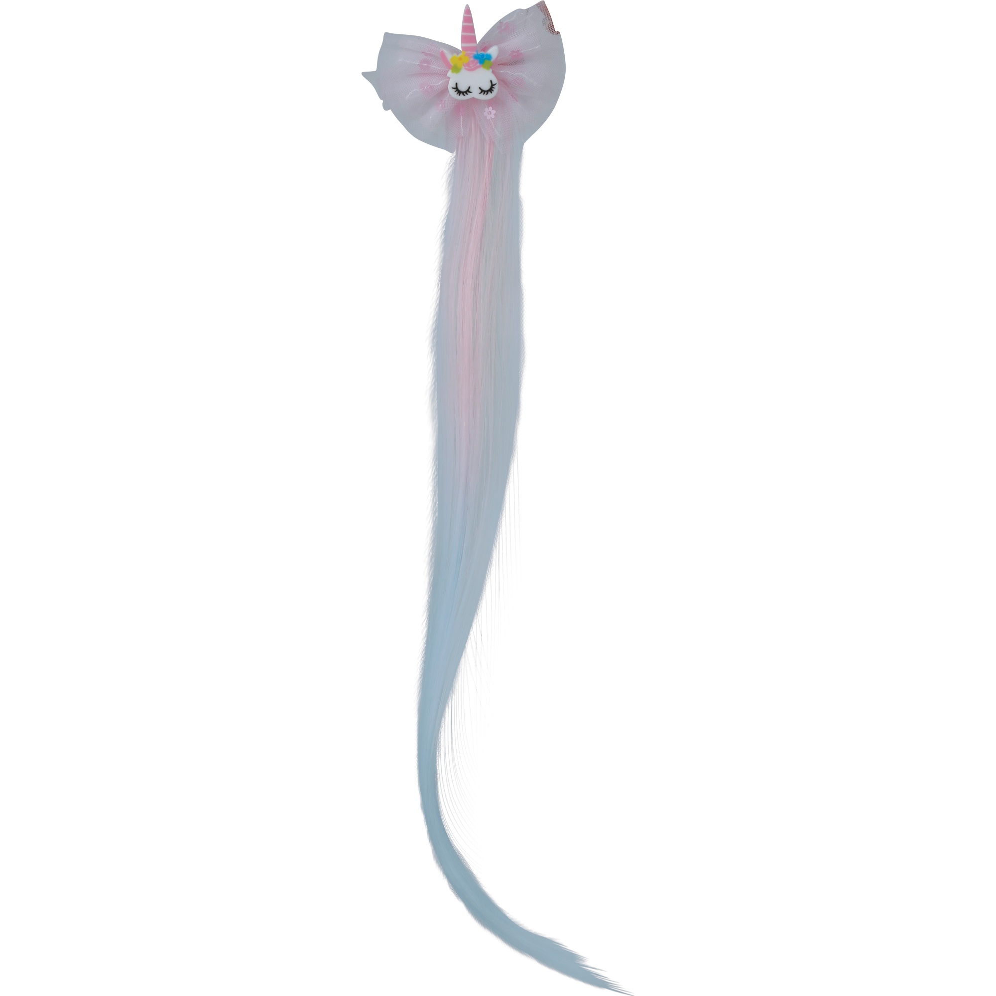 Ciocca decorativa da 35 cm con unicorno e fiocco che dona un tocco di fantasia alla pettinatura.