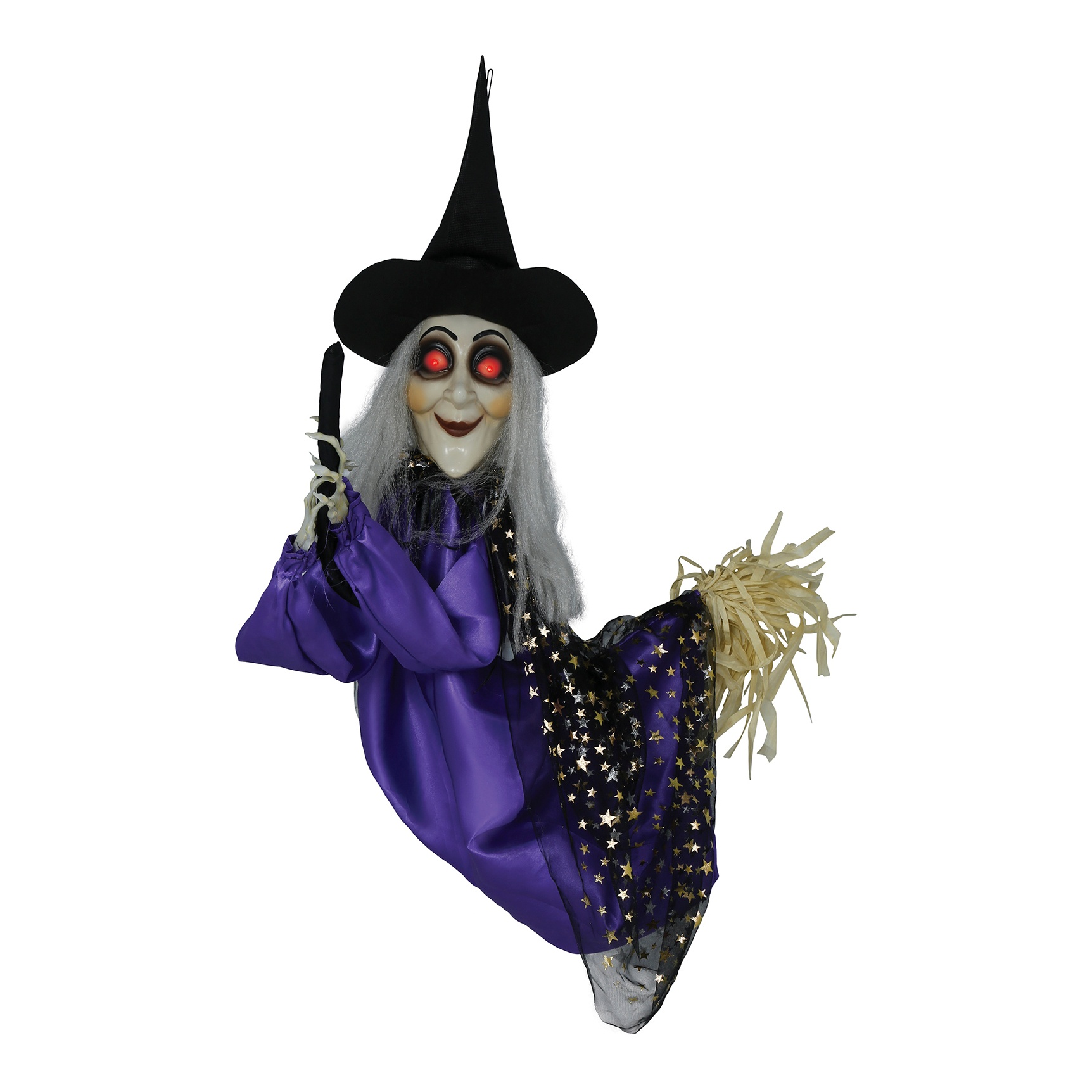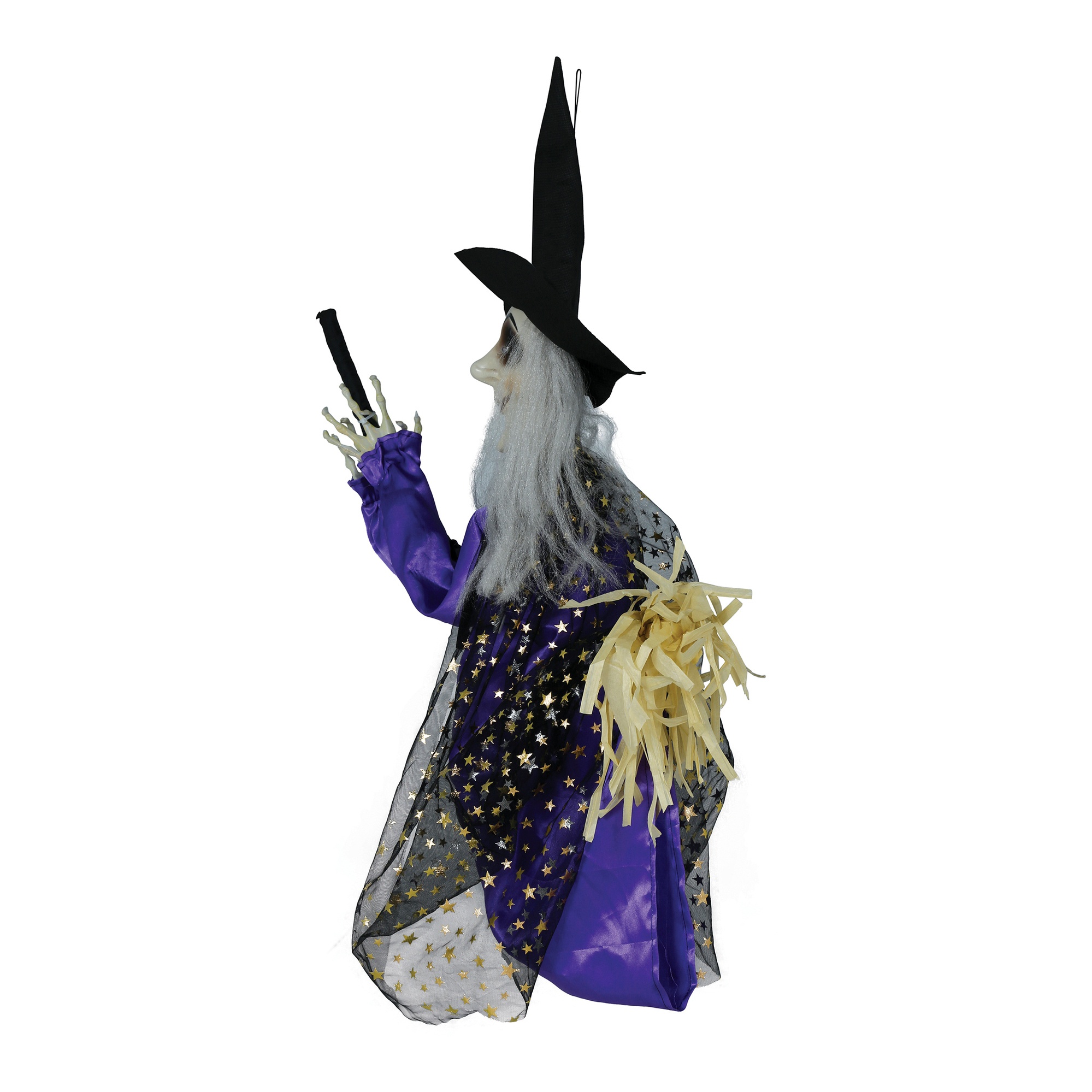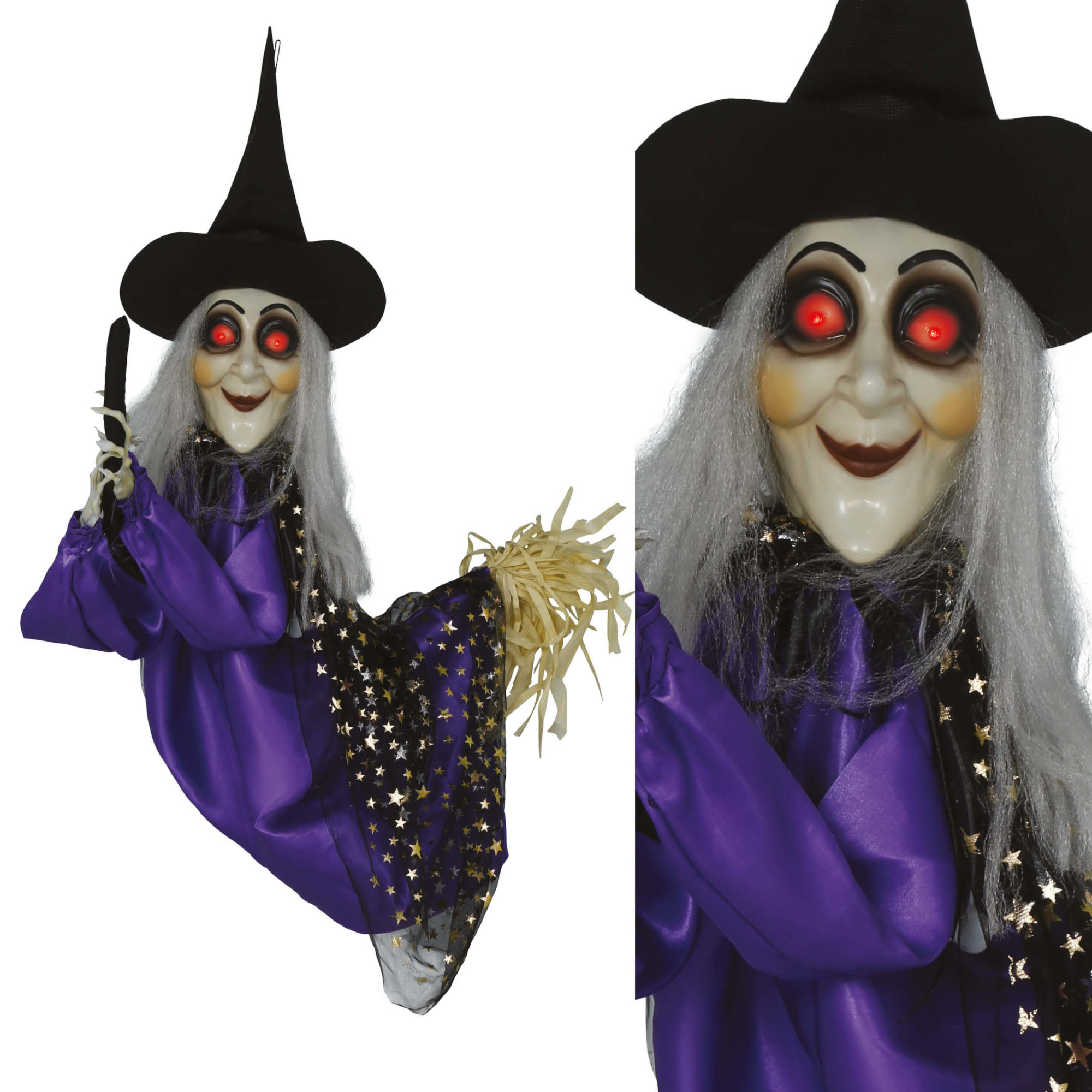 Ciondolo di strega su scopa con luce, suono e movimento di 75 cm