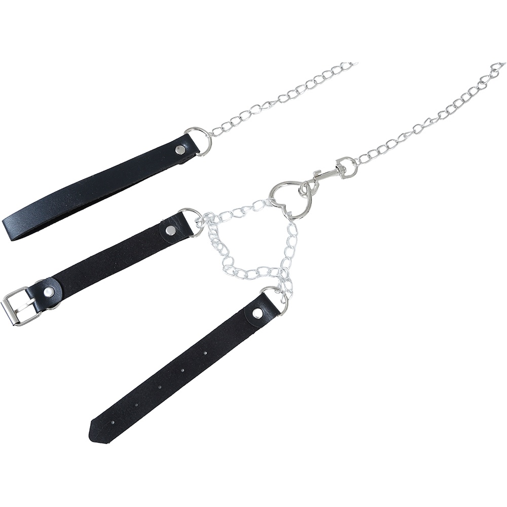 Set in stile sado composto da collare e guinzaglio da 90 cm, pensato per un uso esclusivamente adulto.