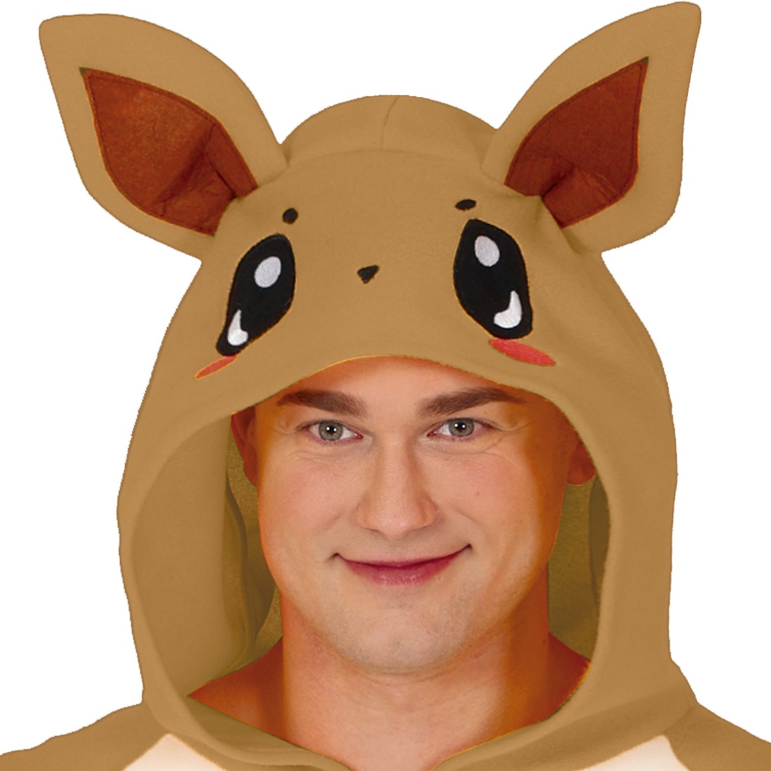 Questo modello ci ricorda il personaggio Eevee di Pokémon. È realizzato in un tutone completo con cappuccio che si chiude frontalmente con una cerniera.