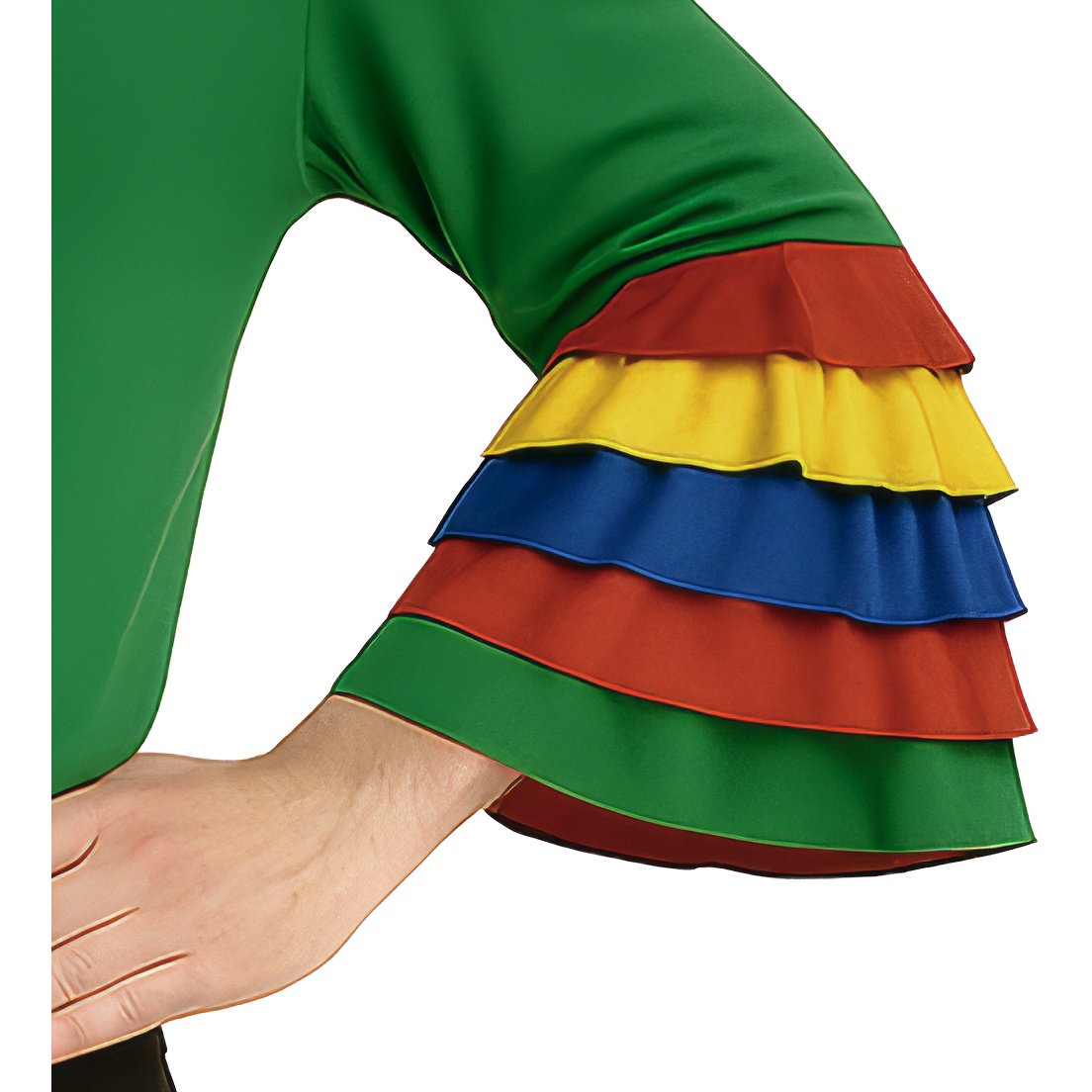 Costume ispirato all'estetica cubana, ideale per chi cerca un look da salsero e d'effetto. Presenta maniche a campana con volant multicolore che aggiungono movimento e ritmo a ogni passo.
