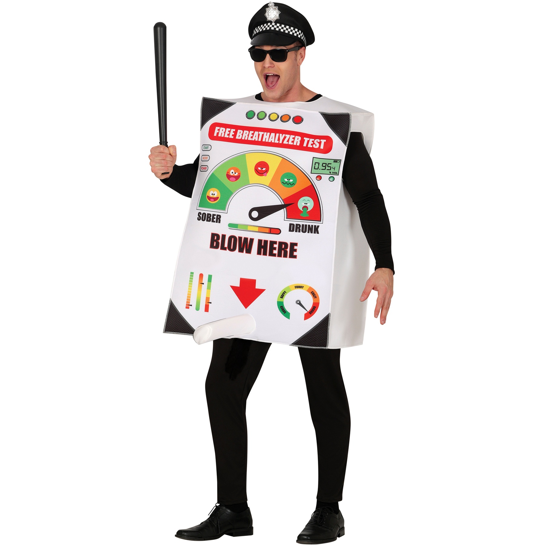 Divertente costume da etilometro per una festa a tema o un addio al celibato.