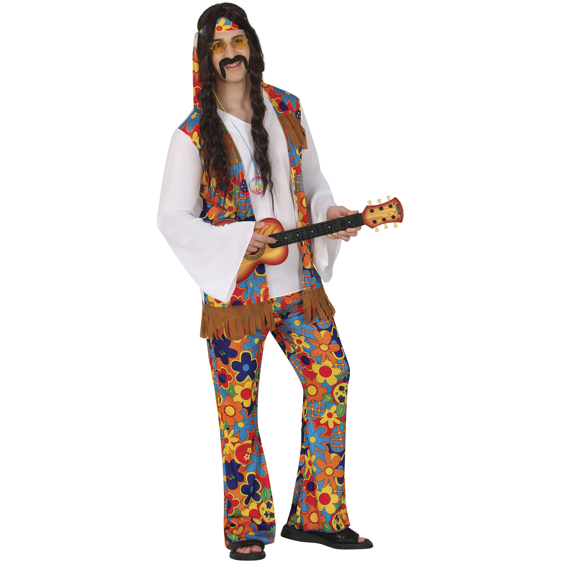 Divertente costume da hippie per uomo che ti permetterà di trasformarti in uno dei personaggi iconici di questo movimento storico degli anni '60.