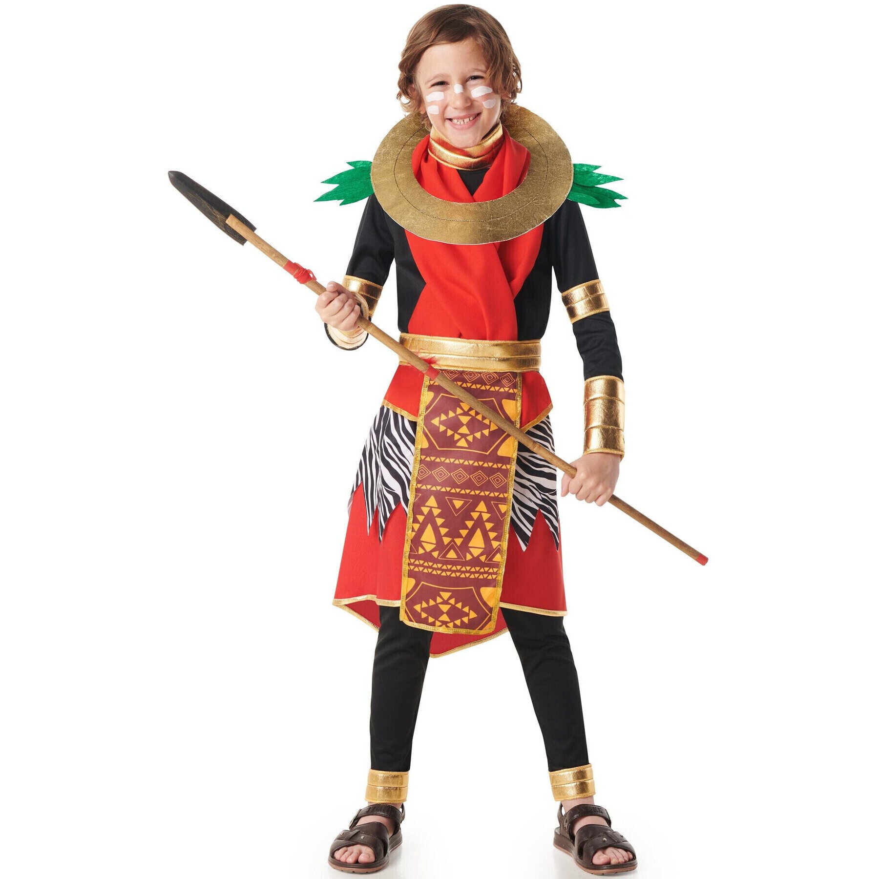 Un impressionante modello di Massai africano infantile che puoi usare sia per bambino che per bambina. A questo costume non manca neanche un dettaglio.