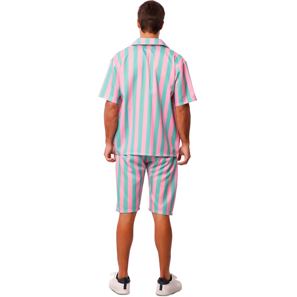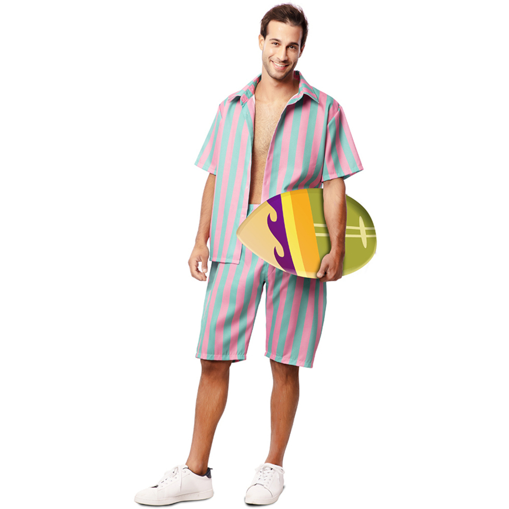 Divertente costume da surfista per uomo, a righe e dai colori vivaci per non passare inosservato.