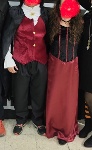 L'accessorio per la testa è composto da un mini cappello seguendo il design del costume e completato con un velo nero che conferisce molto carattere al costume.