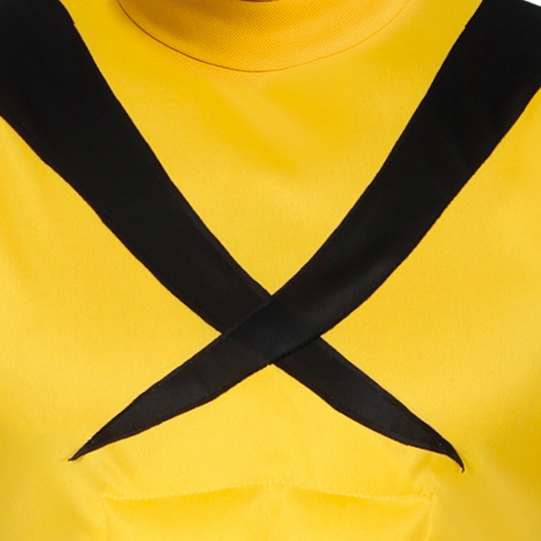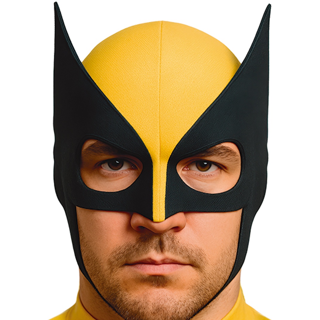 Questo modello ci ricorda il personaggio di Wolverine. È composto da una tuta gialla con dettagli neri e include una maschera.