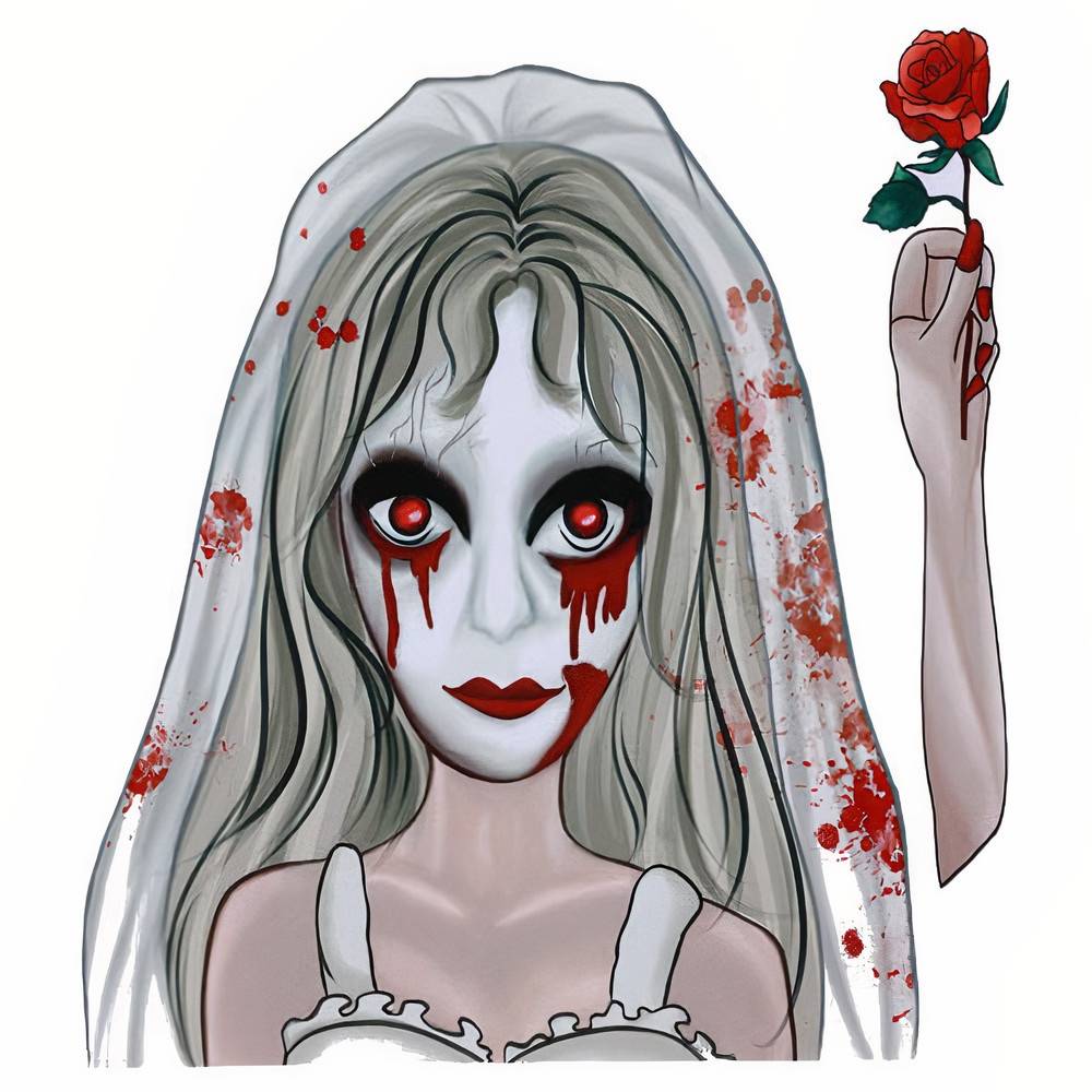 - Adesivo decorativo con design di sposa zombie con velo insanguinato e rosa rossa. Ideale per finestre o specchi.