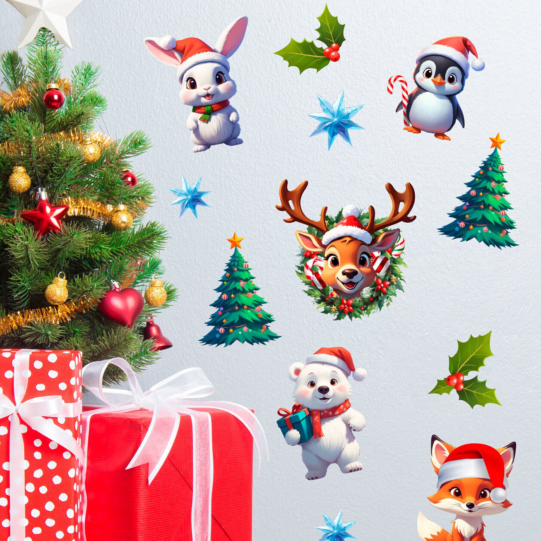 Decorazione adesiva da parete con animali natalizi di 70 x 25 cm
