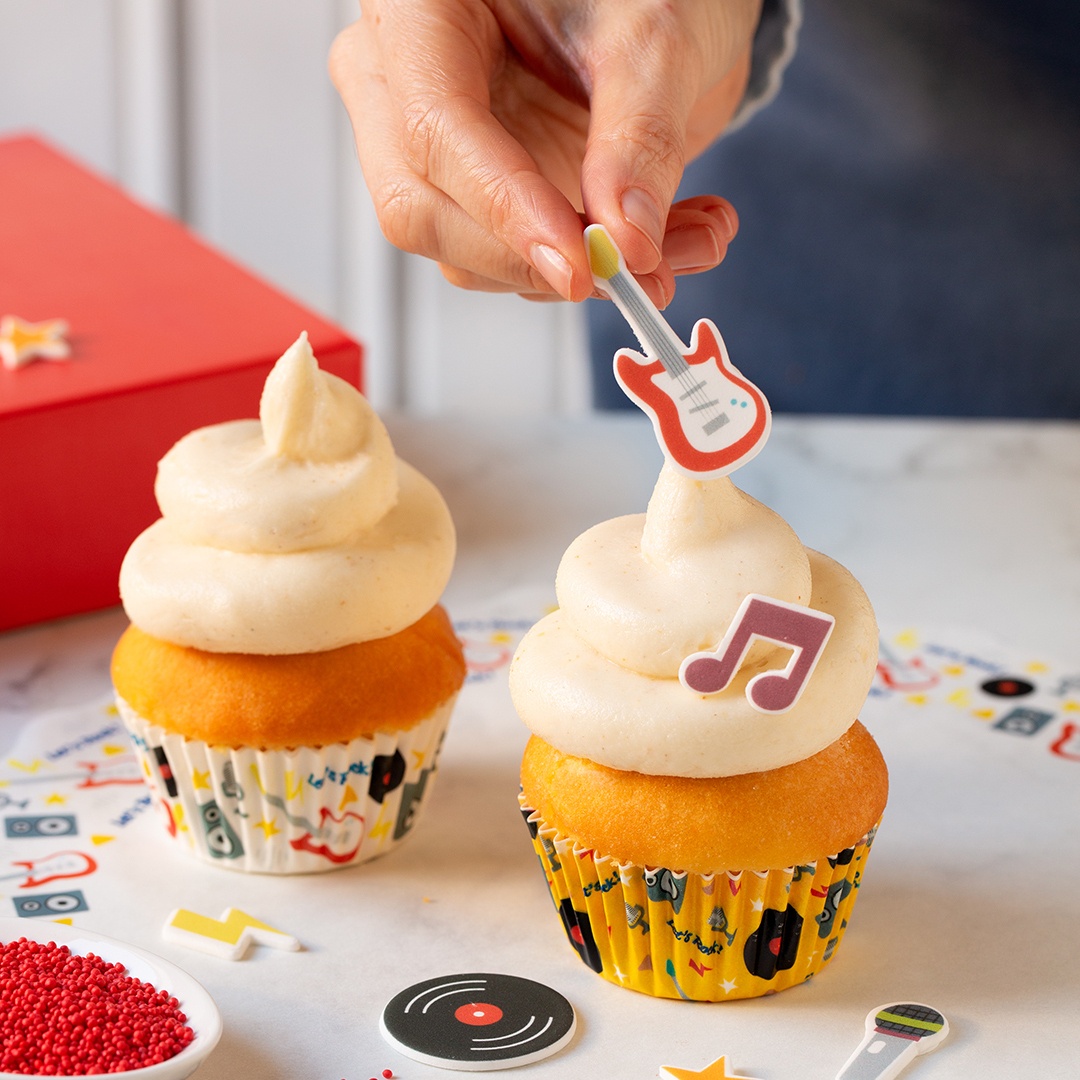 - Questo set di decorazioni in zucchero bidimensionali consente di decorare i cupcake in modo semplice e originale.