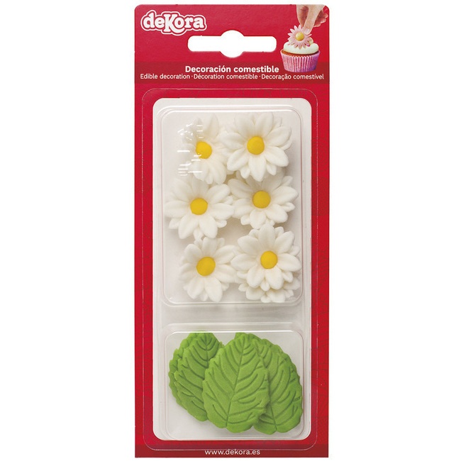 Figure di zucchero di margherite e foglie - Dekora - 12 unità