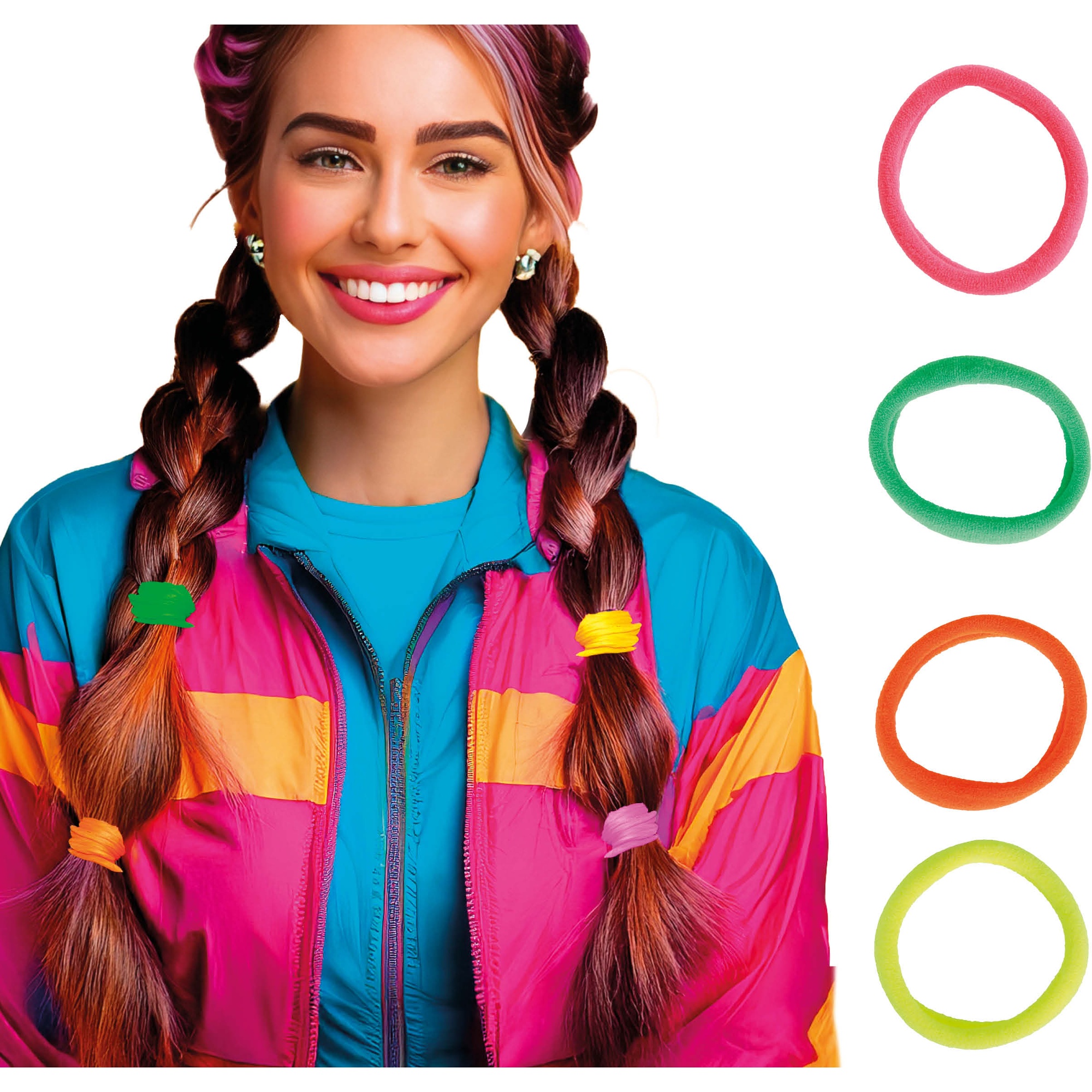 - Confezione da 5 elastici in colori fluo vibranti per un look retrò anni '90.